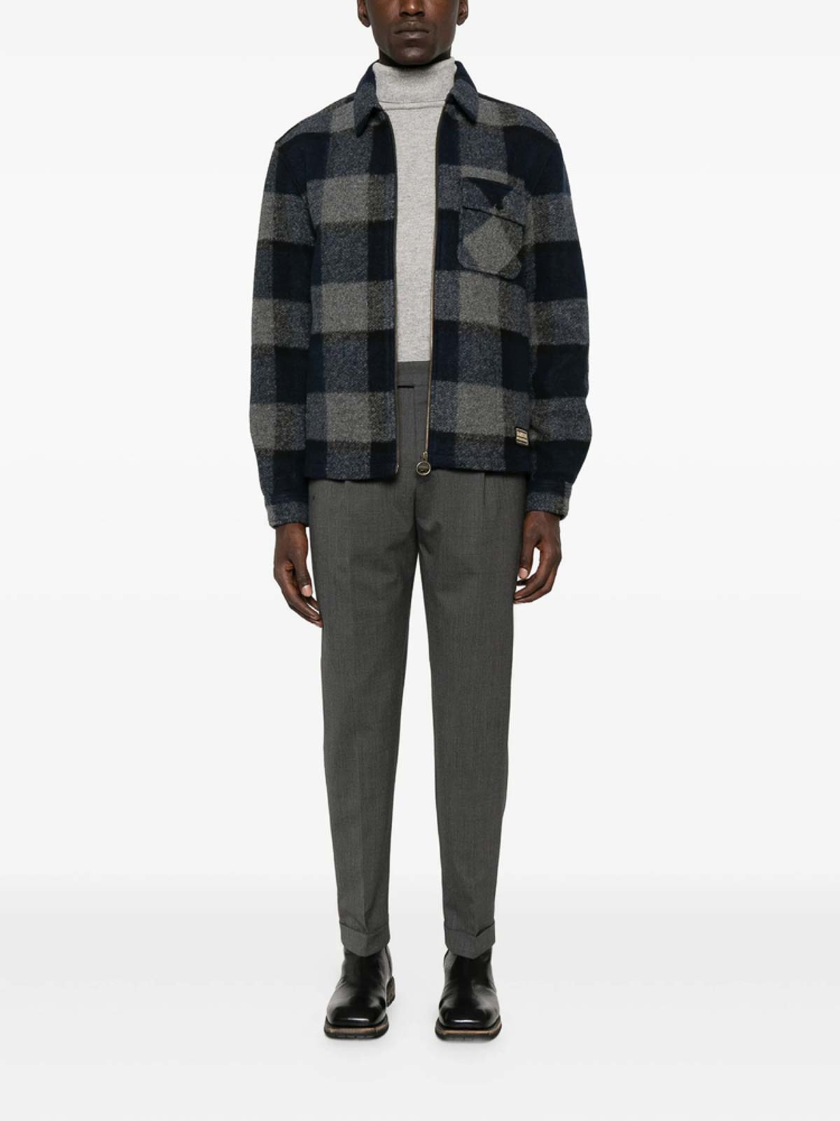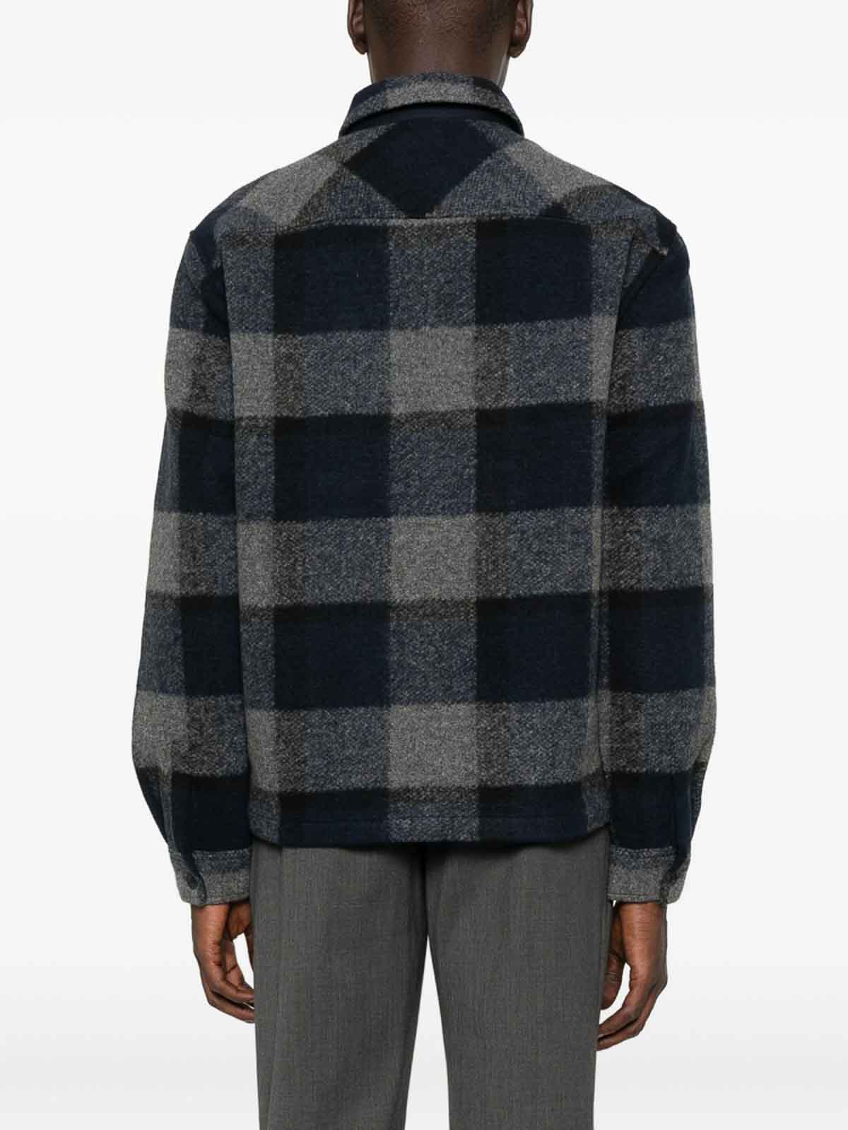 Poche poitrine zippée à carreaux bleu marine et manches longues