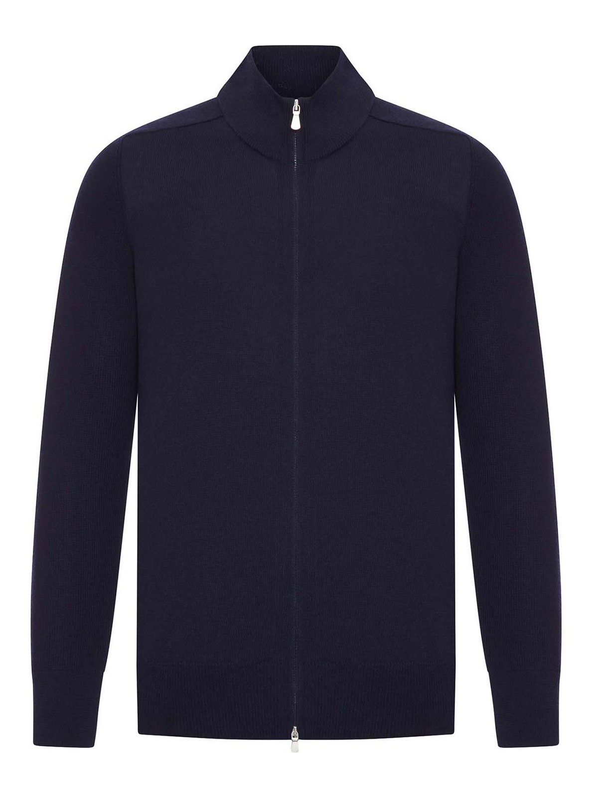 Col haut, fermeture éclair bidirectionnelle, ourlet droit, poignets et ourlet côtelés, bleu