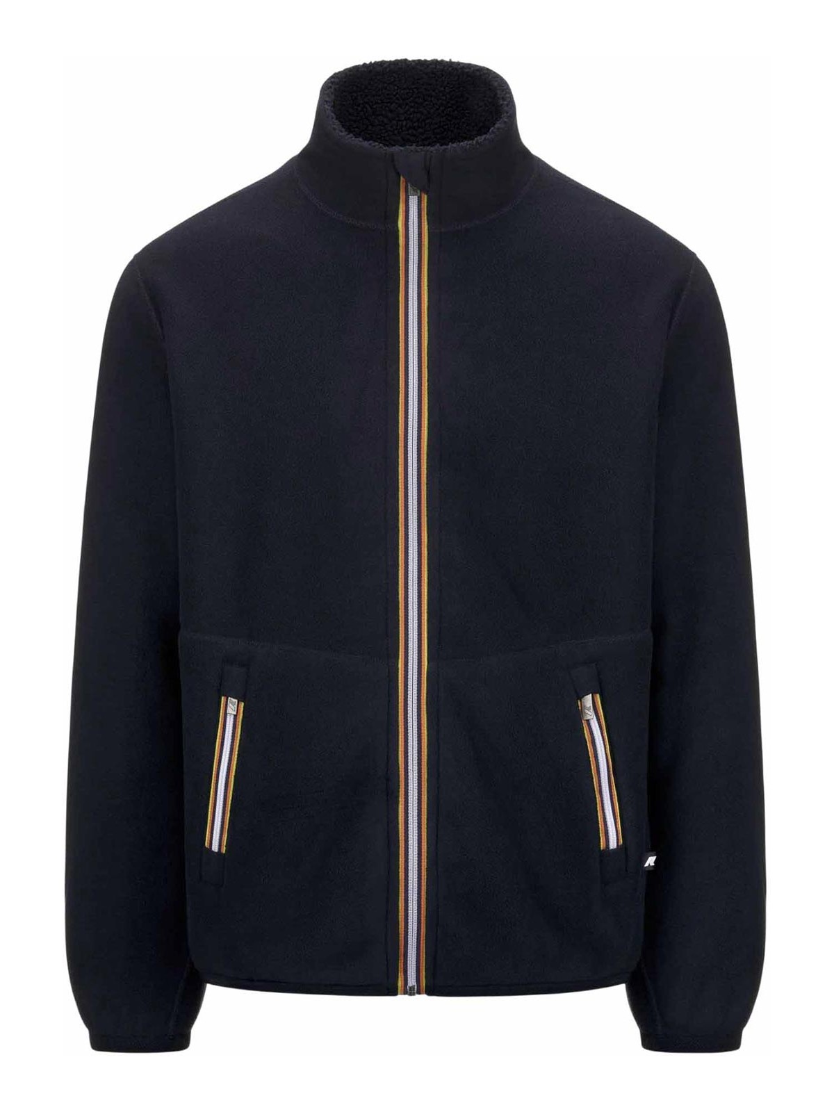 Veste polaire K-way Pascal Sherpa pour homme en polaire réversible bleue/Veste réversible K-way pour homme de coupe classique au design sportif et polyvalent, fabriquée en tissu polaire à deux couches pour garantir le confort thermique et la liberté de mouvement pendant la mi-saison. une face en polaire douce effet sherpa, chaude et douce au toucher, tandis que l'autre en polaire lisse légère, idéale pour un look plus technique et minimaliste. le modèle dispose d'un col haut, d'une fermeture zippée complète au menton rabat de protection, poignets élastiqués, deux poches extérieures à boutons-pression et deux poches intérieures poches zippées Complétée par le logo K-way en silicone, cette veste allie fonctionnalité, chaleur et style urbain. Tissu polaire réversible à deux couches, côté en tissu polaire effet sherpa, côté polaire doux, niveau de chaleur moyen, col haut, fermeture zippée complète avec rabat de protection du menton, poignets élastiqués, deux poches extérieures à boutons-pression, deux poches intérieures avec fermeture éclair, coupe classique, couleur : bleu profondeur/profondeur du bleu Entretien du produit : lavage doux, max. 30 °C, ne pas utiliser de javel, ne pas sécher au sèche-linge, repasser à basse température en plaçant un chiffon (ne pas nettoyer à sec, laver séparément), protéger les accessoires pendant le lavage composition : tissu principal : 100 % polyester