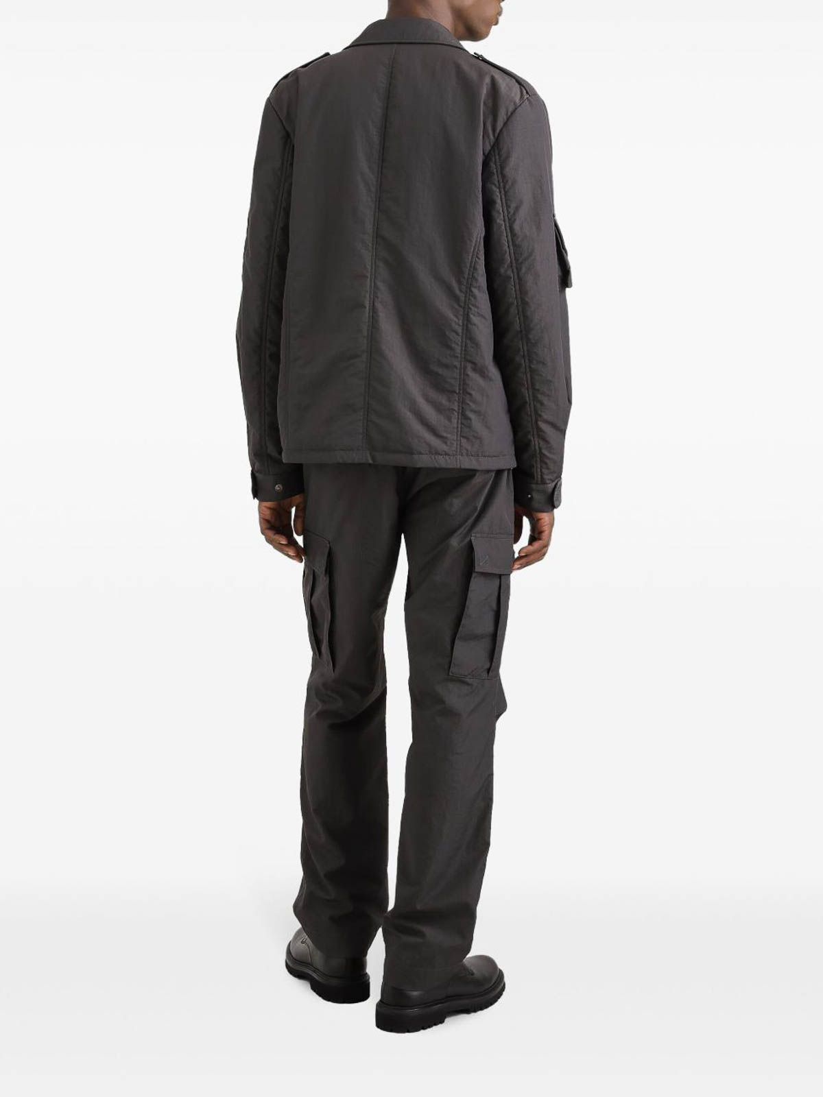 Parka grise en tissu technique avec plaque et logo ton sur ton avec boutons-pression, col de chemise, poches plaquées sur la poitrine avec boutons-pression