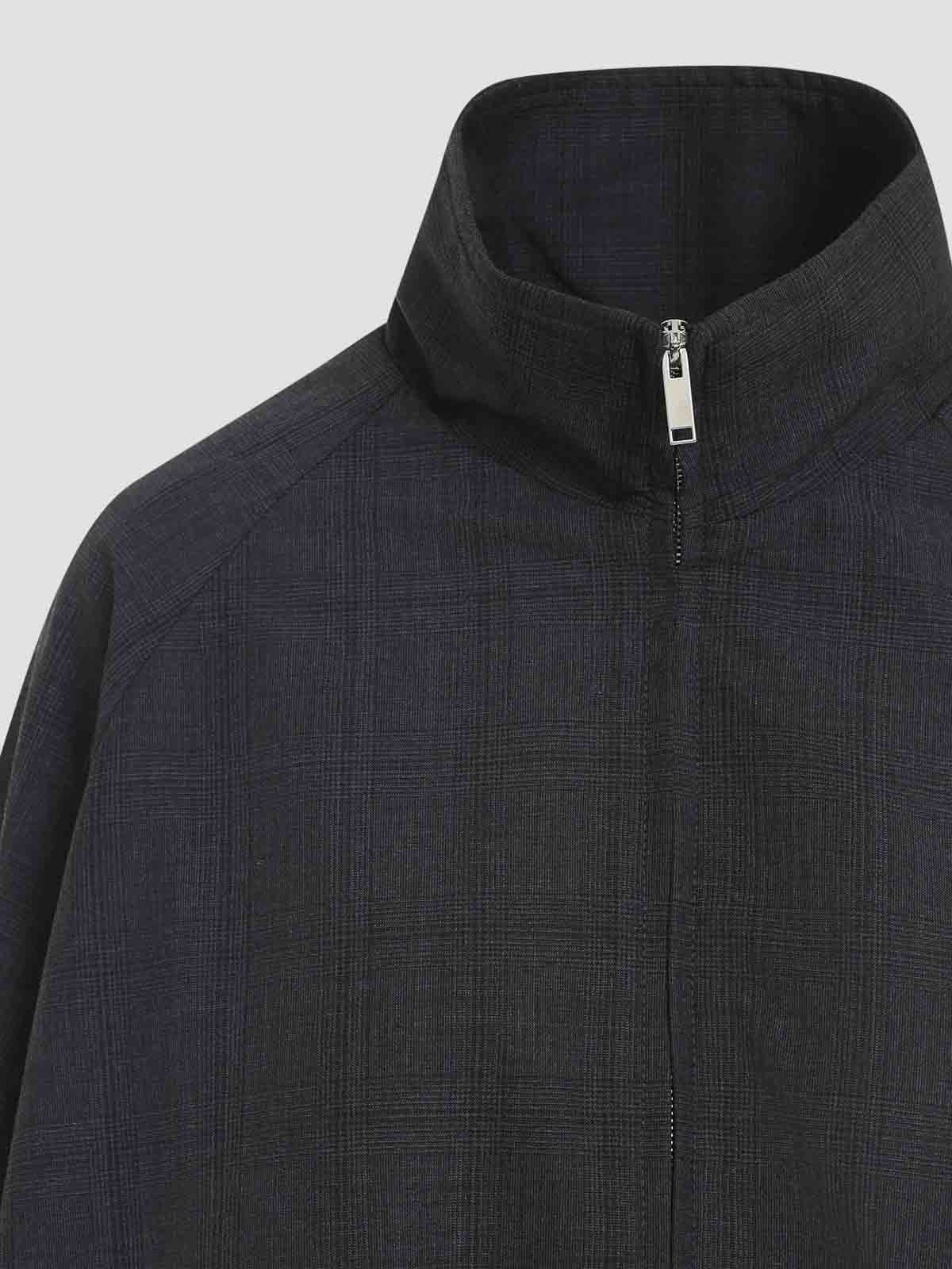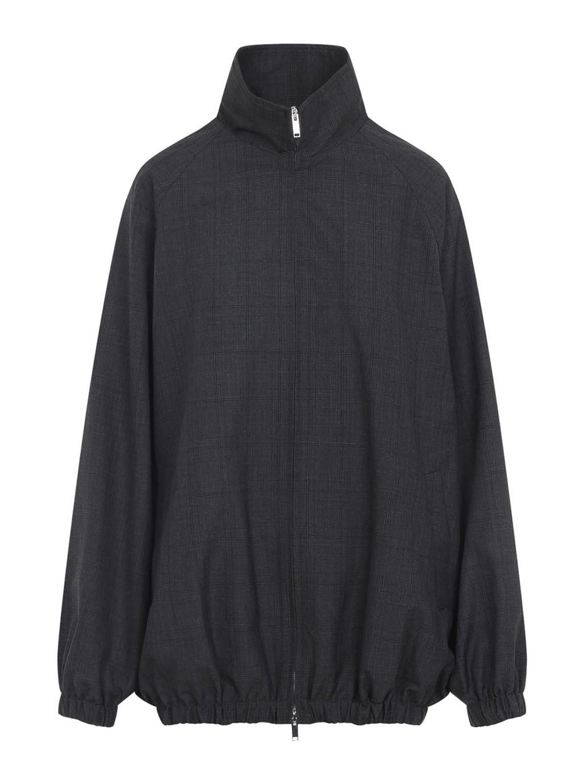 Veste de survêtement à carreaux Baxter gris foncé The Frankie Shop, confectionnée et mélangée, col montant, poches latérales zippées, manches longues, poignets et ourlet élastiques, ourlet droit, motif à carreaux sur l'ensemble