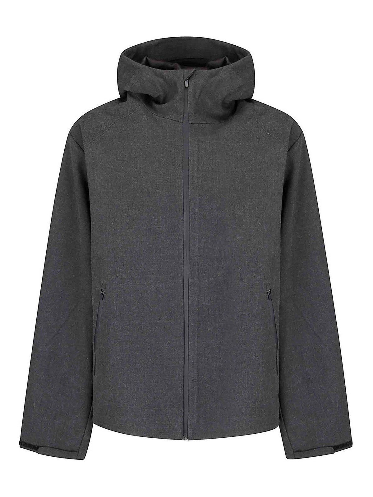 Veste imperméable à col haut, fermeture zippée, poches zippées, ourlet droit.