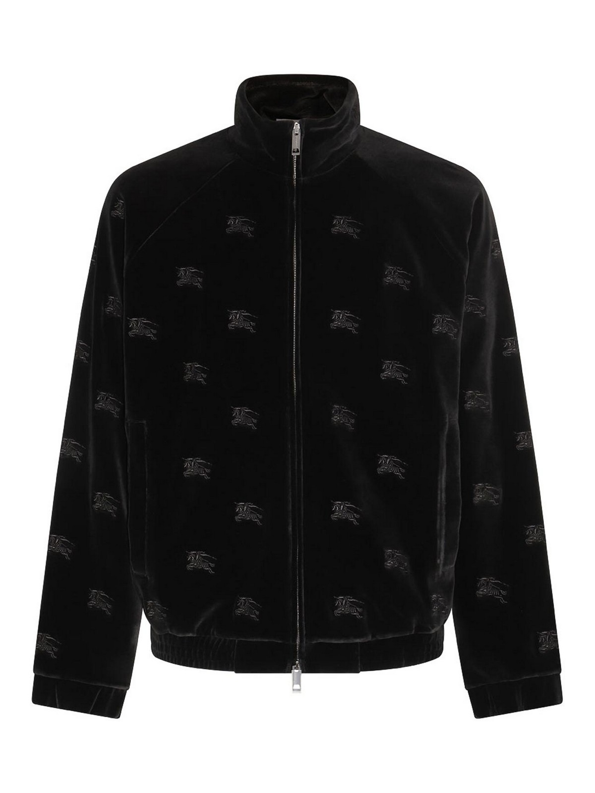 Veste duffer Dursley noire de Burberry dotée de manches longues, d'une fermeture éclair, d'un col haut, d'ourlets côtelés et d'un motif logo brodé ton sur ton sur ton sur l'ensemble du corps