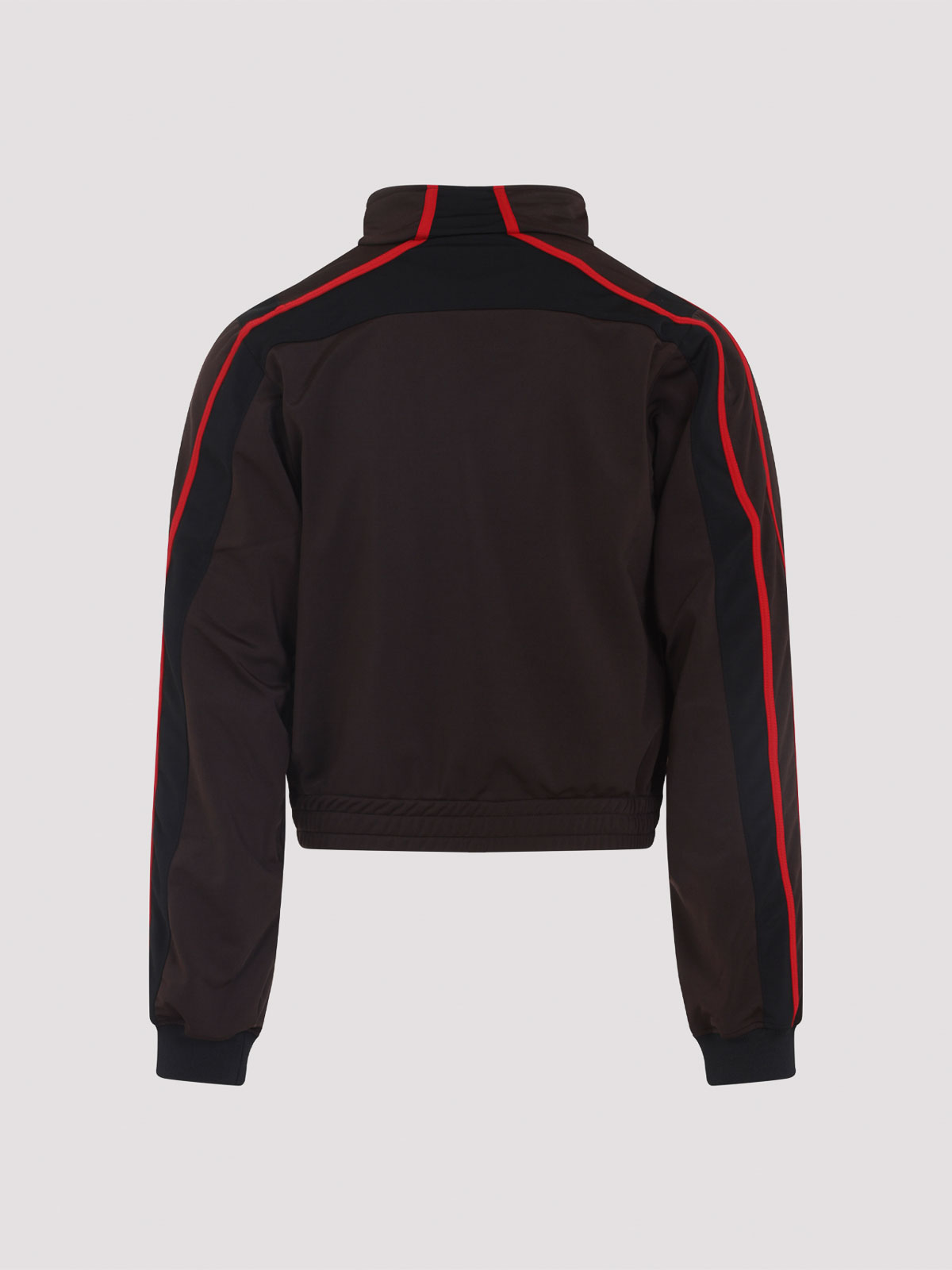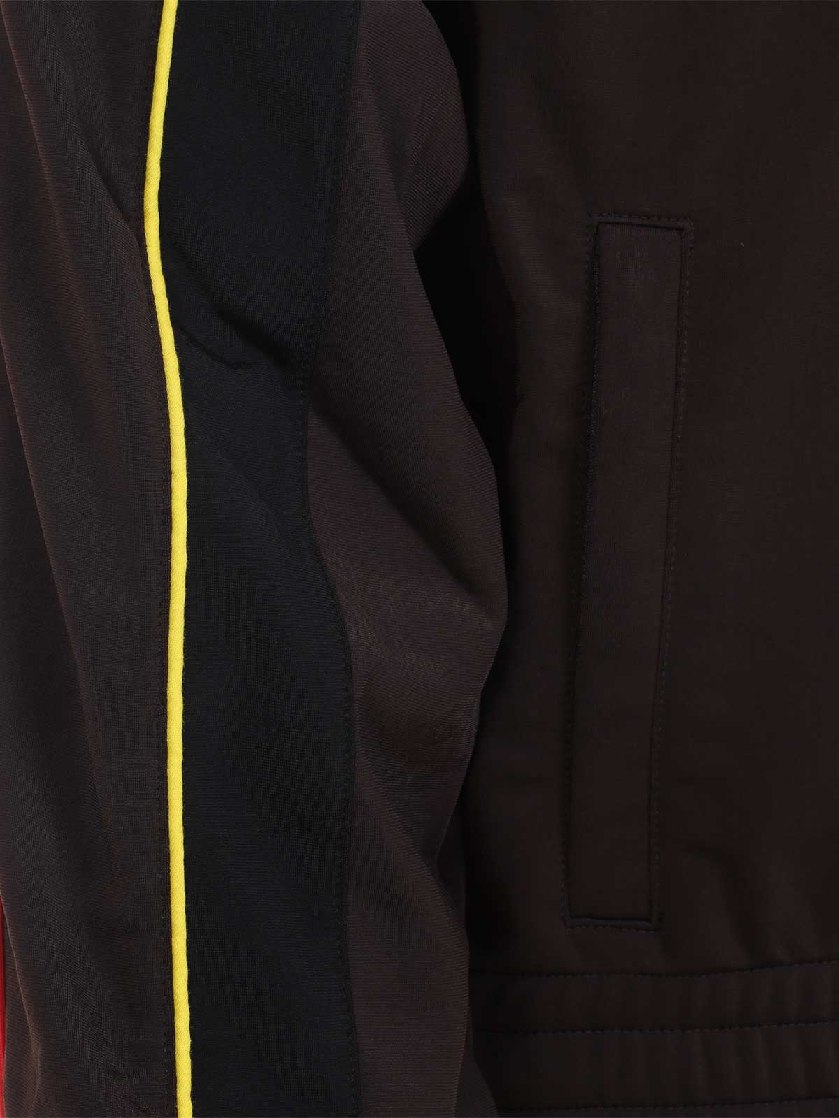 Survêtement rétréci Martine, marron rose, Pure Stand, col montant, poitrine zippée, lettrage blanc contrastant, logo, poches latérales, poches latérales, manches longues, poignets côtelés, ourlet droit, noir et jaune sur les épaules