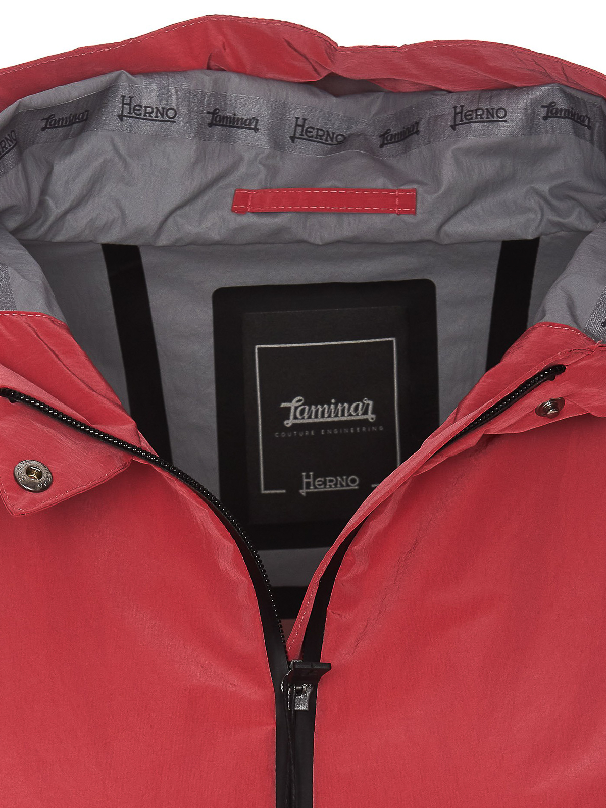 Veste en gore-tex laminaire rose Herno avec fermeture éclair frontale, capuche, manches longues, poignets, élastiquée à la taille