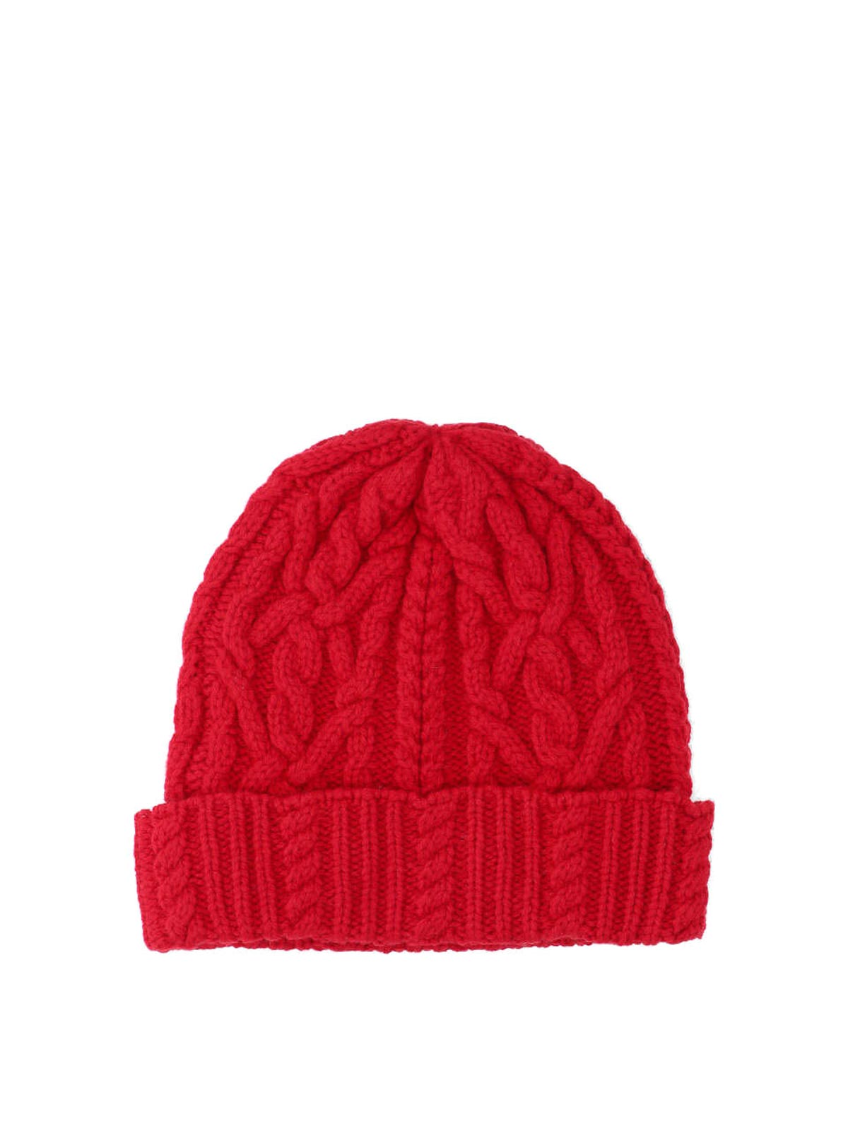 Bonnet Aspesi, en laine rouge, motif torsadé, revers.