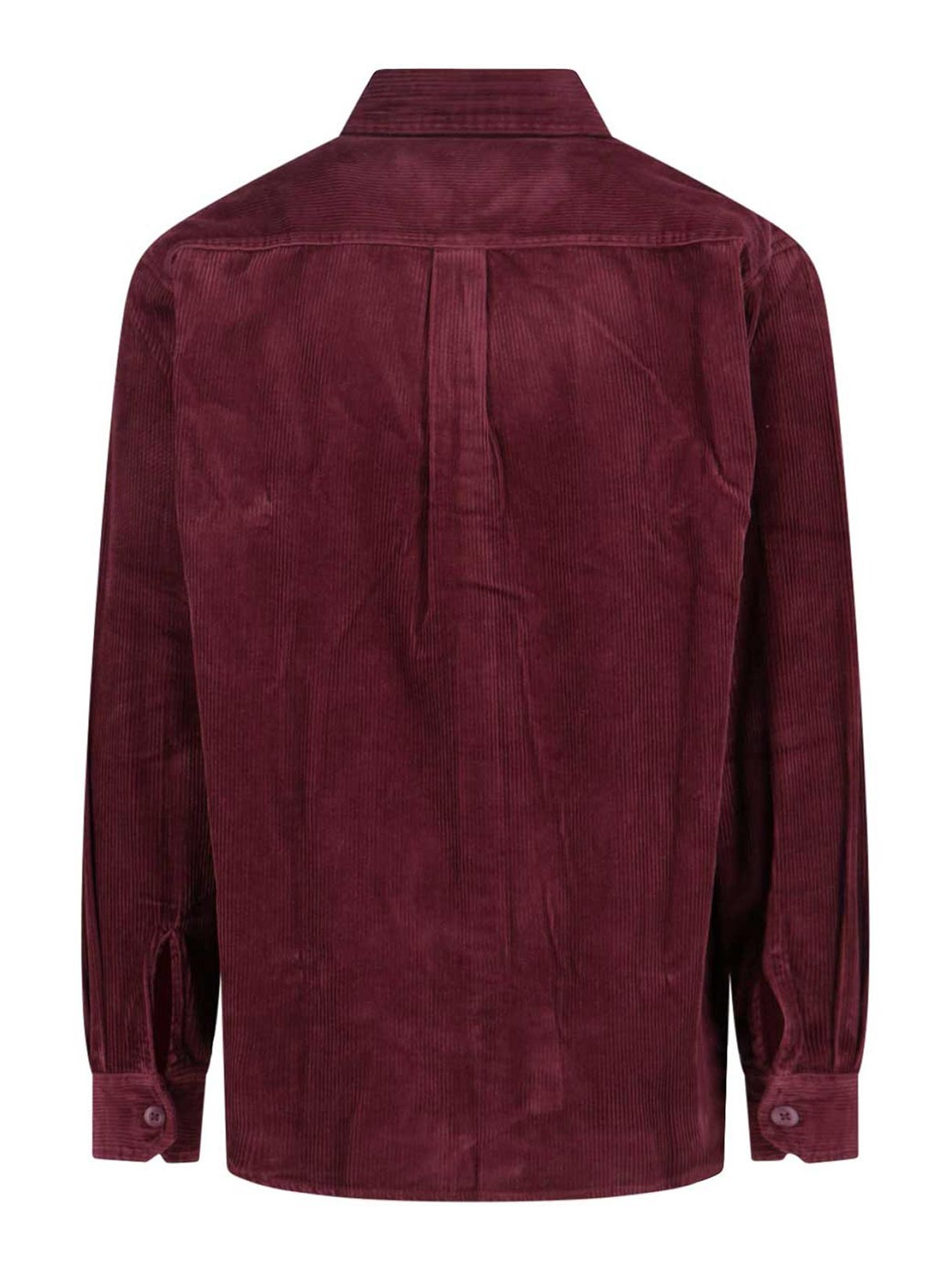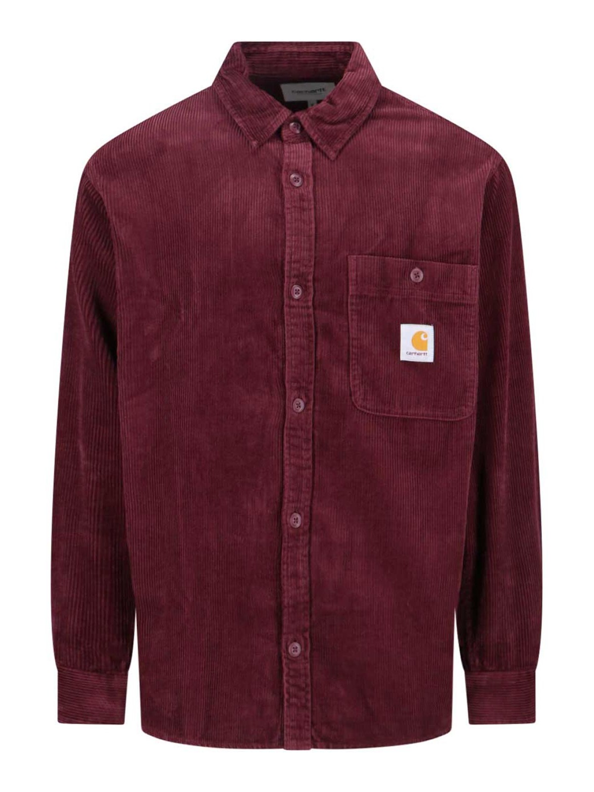 Veste Carhartt Wip L/s en silex, en coton rouge, tons bordeaux, finition côtelée, col classique, fermeture boutonnée, poche avant boutonnée, étiquette logo contrastante sur le devant, poignets boutonnés, ourlet incurvé.