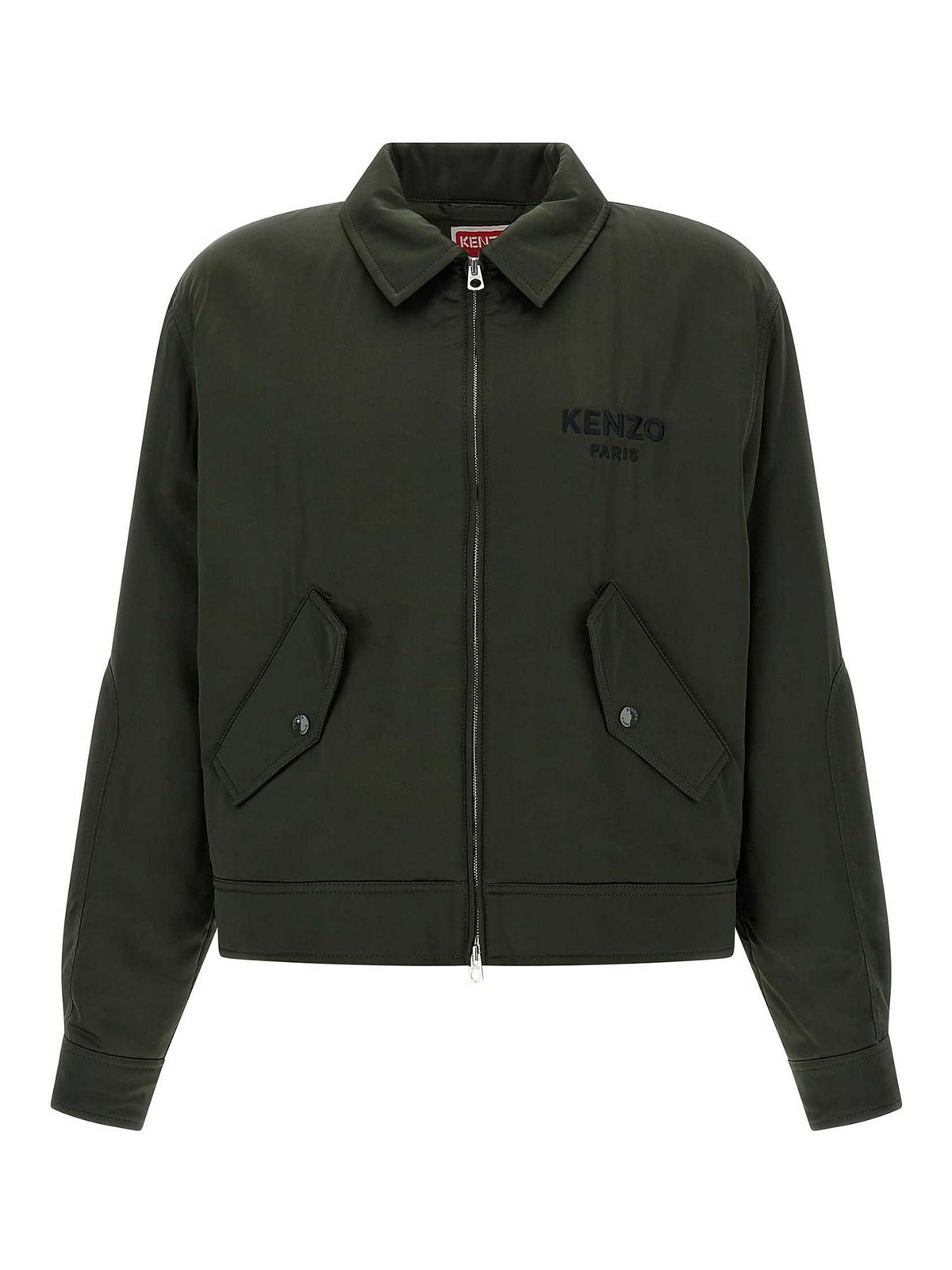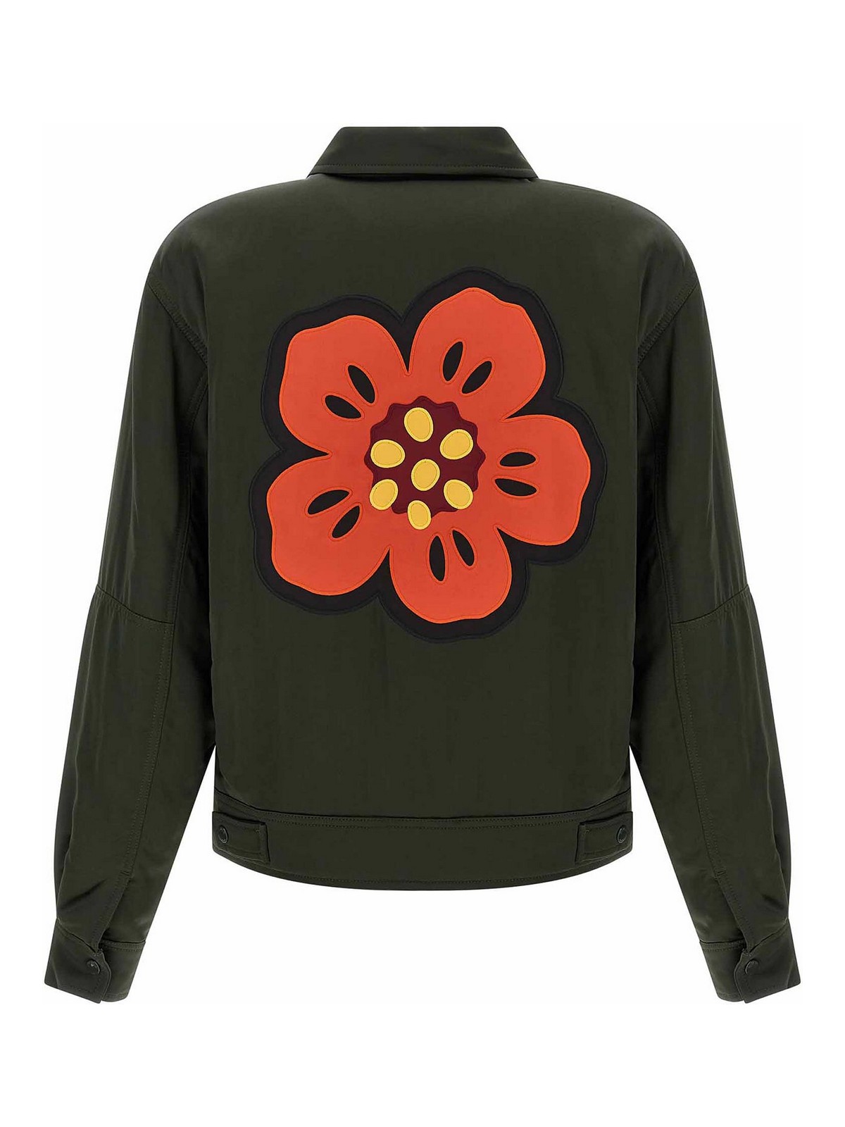 Blouson en satin avec fleur boke à l'arrière, col, poches zippées, manches longues à revers