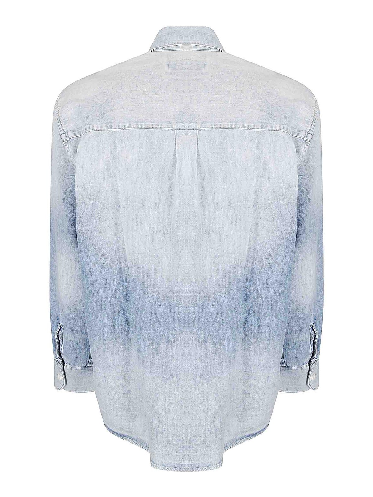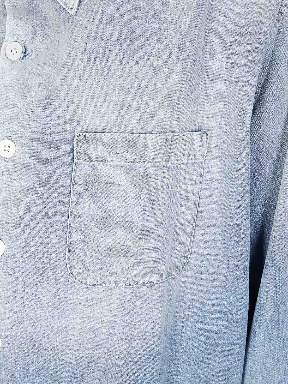 Denim shirt, front button fastening, chest pocket, pleats on the back, oversized fit.