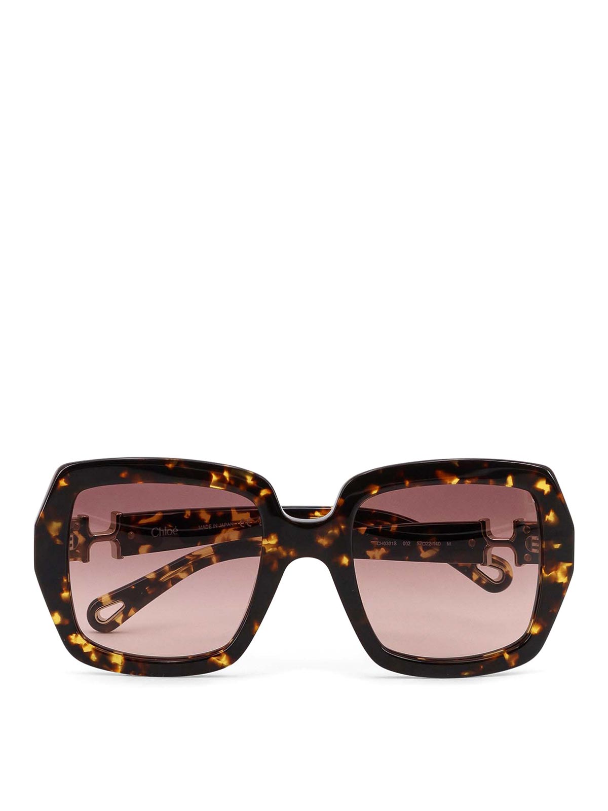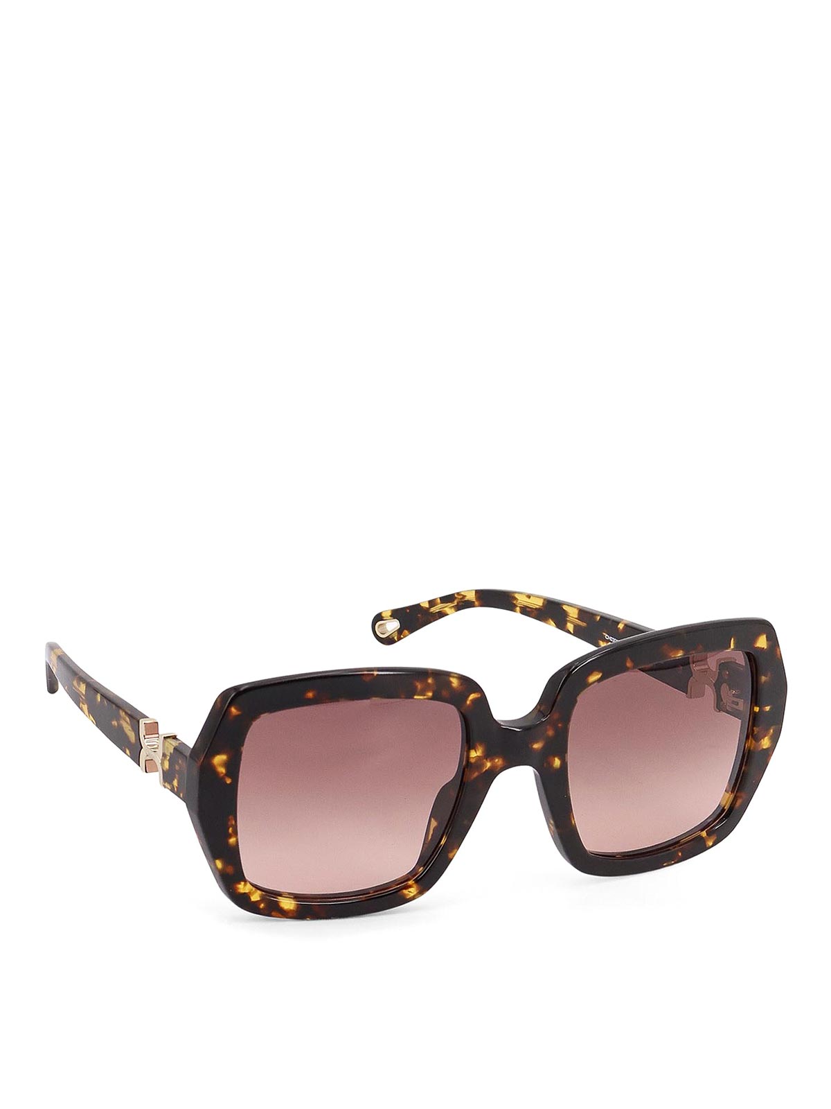 Square lenses with lateral logo detail in acetate tortoiseshell metal made in Italy