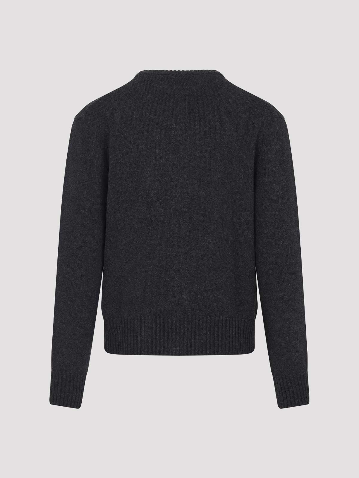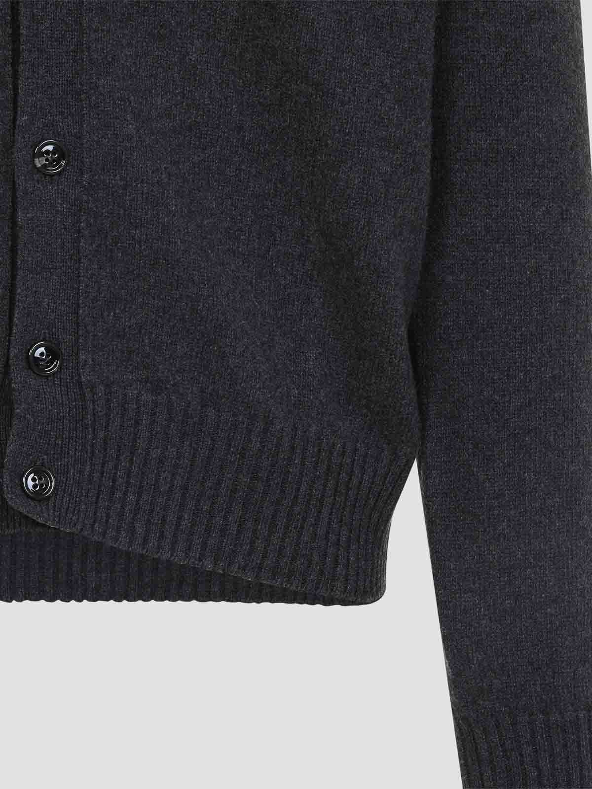 Ami adc anthracite cardigan crafted from anthracite and v, neckline button logo on the chest long sleeves ribbed edges