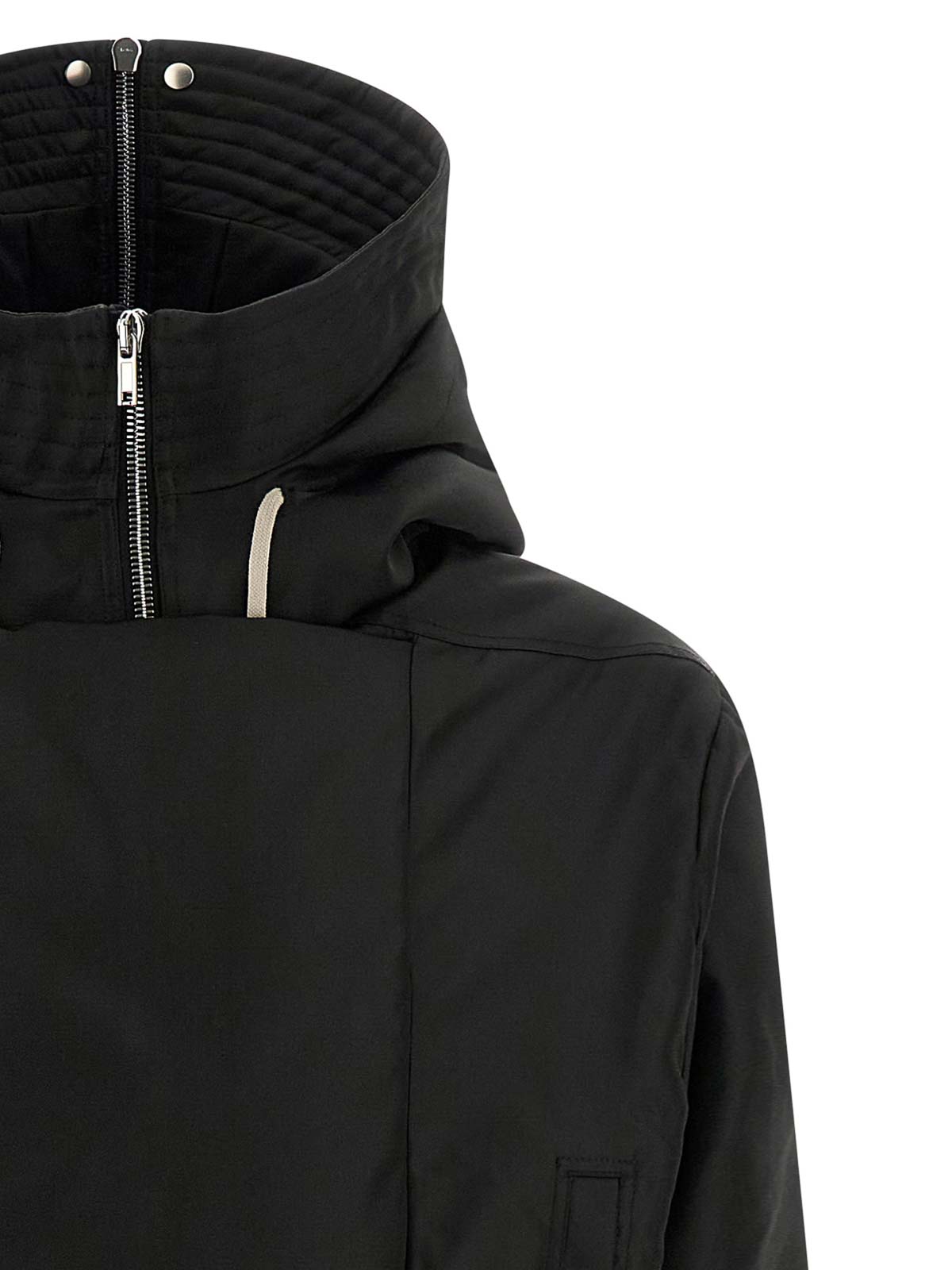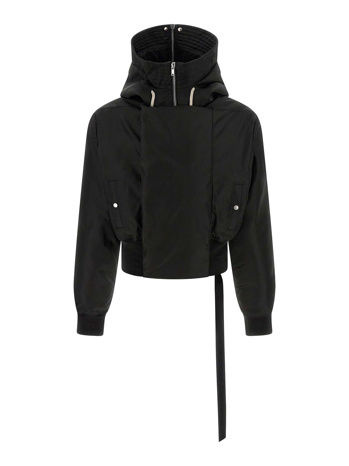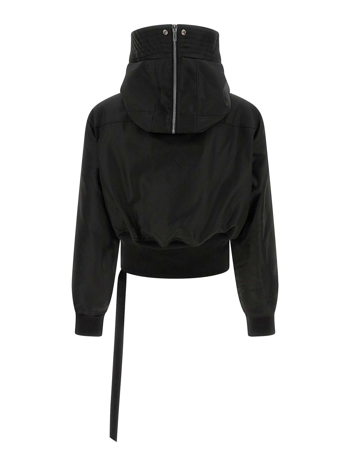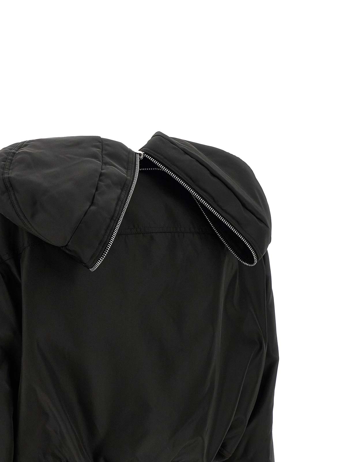 alice' parka in slightly padded airy nylon, large hood with zip that can be opened to create a wide collar on the shoulders, crop model, high neck, zip closure with asymmetric flap with overlapping snap button closure on the front, pockets, long sleeves with stretch knit cuffs, stretch knit hem