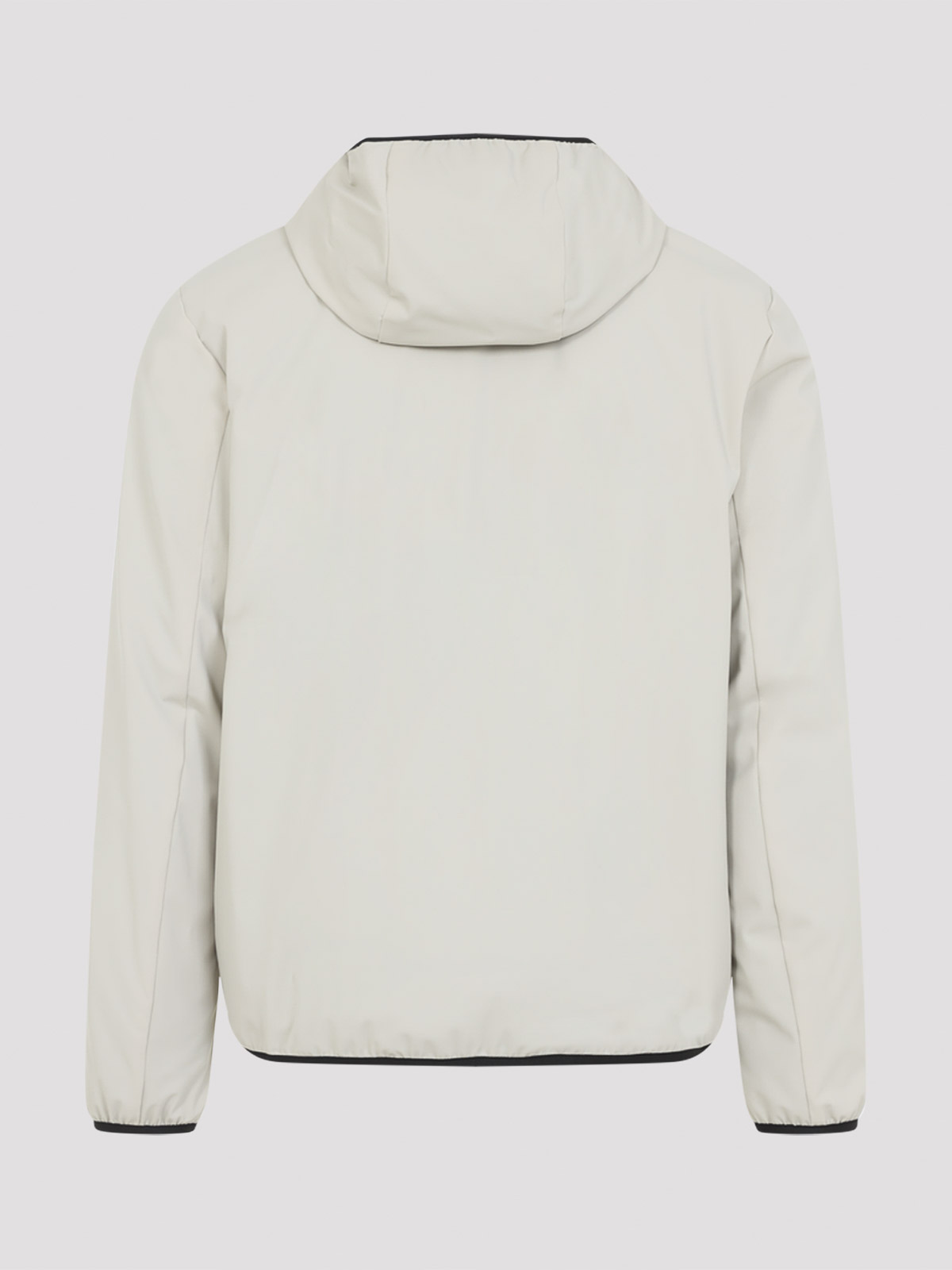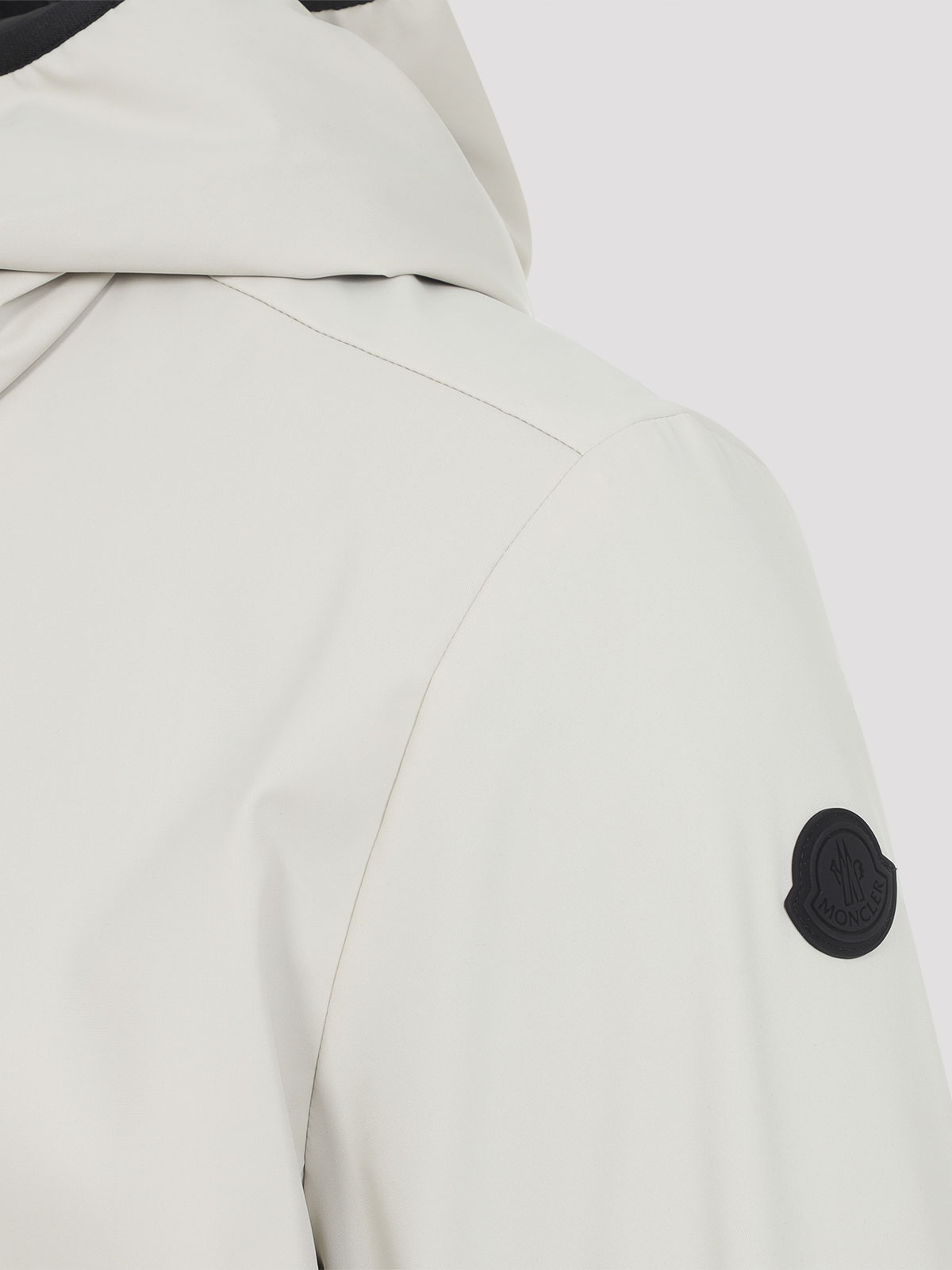 Moncler altair light grey polyamide jacket. down-filled jacket crafted from light grey soft-shell fabric, featuring an adjustable hood, a two-way zip fastening, two side pockets, a logo patch on the sleeve, elasticated cuffs and hem, and a full lining.