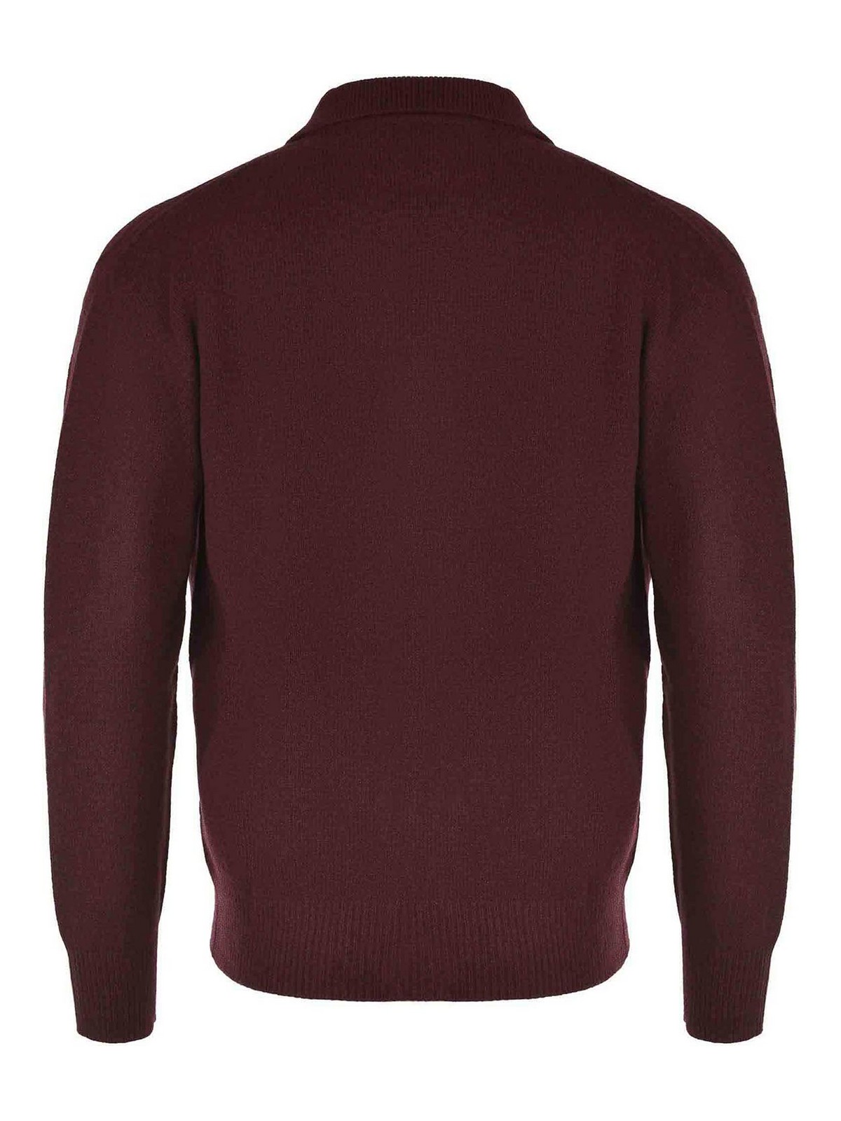 Amaranth cardigan made from a wool and cashmere blend in burgundy color, shirt collar, button closure, long sleeves, ribbed cuffs and hem, 90% wool, 10% cashmere made in italy