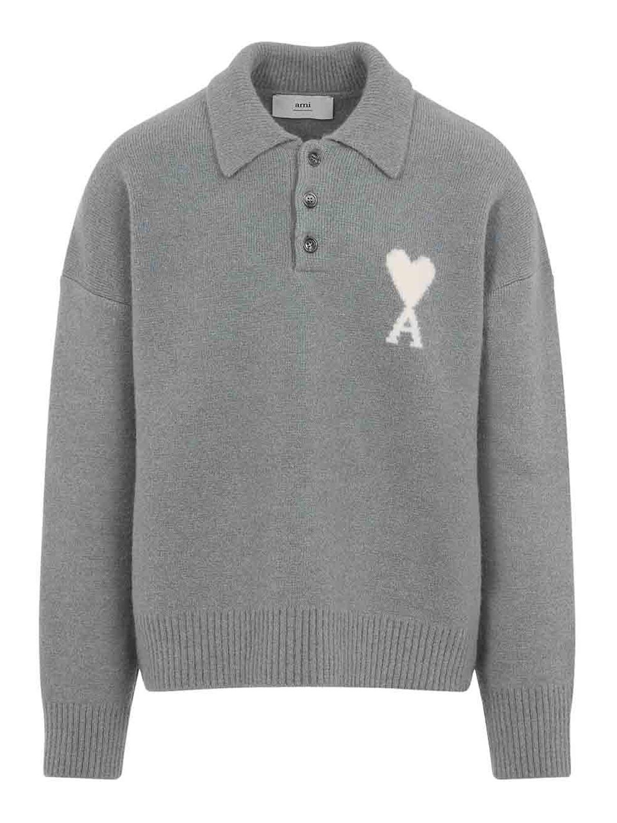 AMI PARIS: polo shirts - Ami De Coeur Wool Polo Shirt