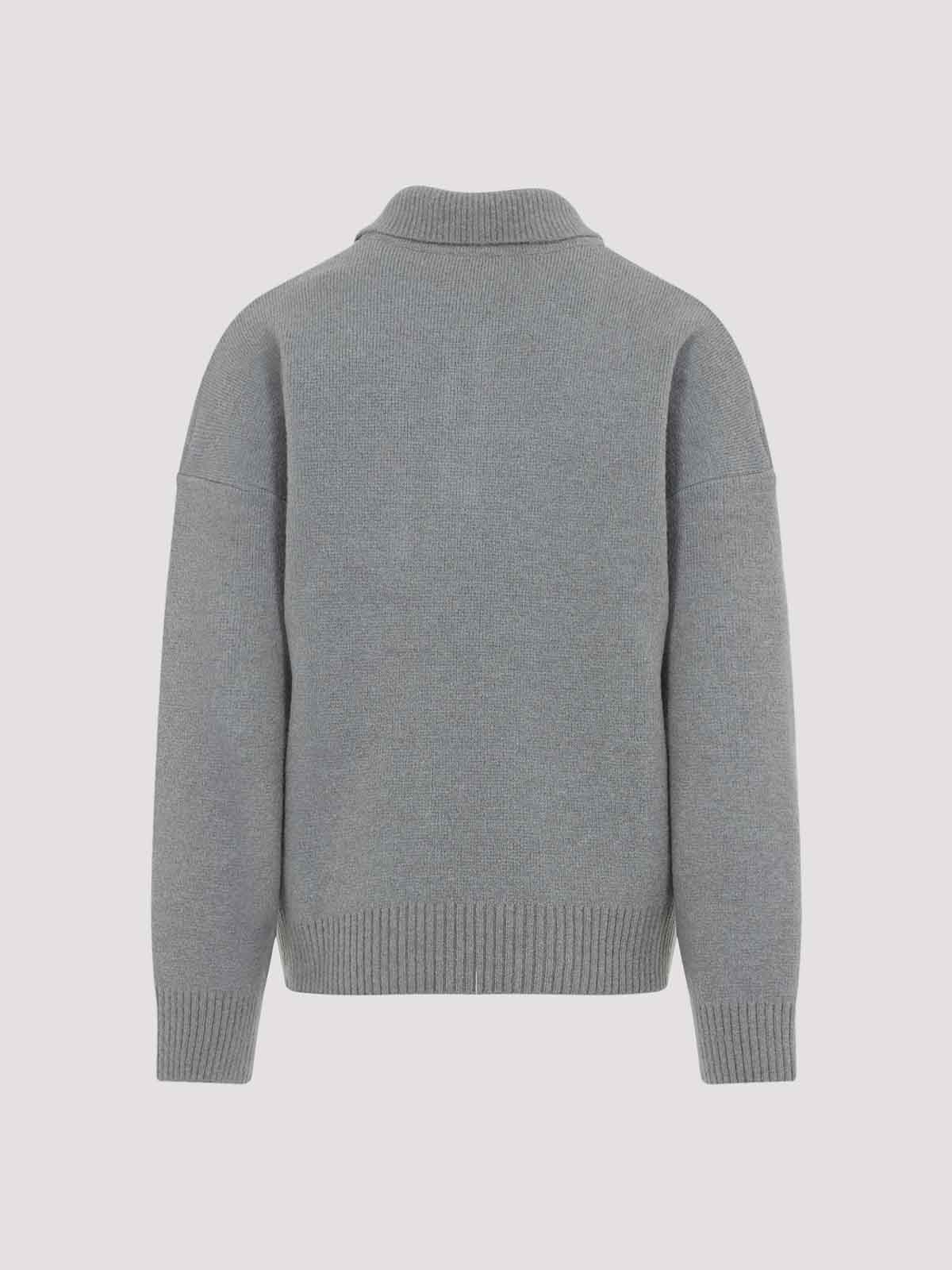 Grey polo collar three-button placket long sleeves ribbed hem and cuffs