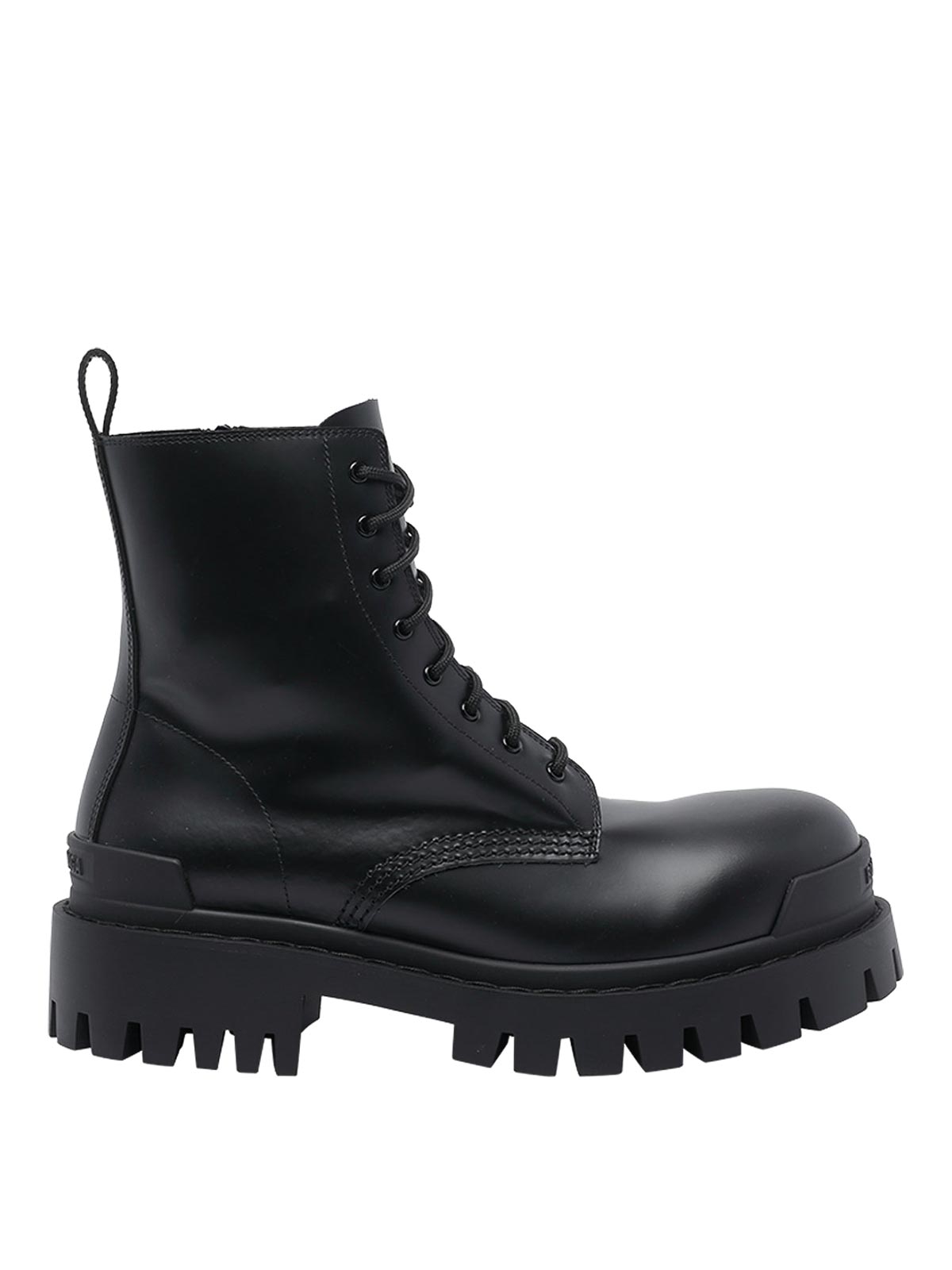 Balenciaga black strike booties, leather upper, string closure, lateral zip closure