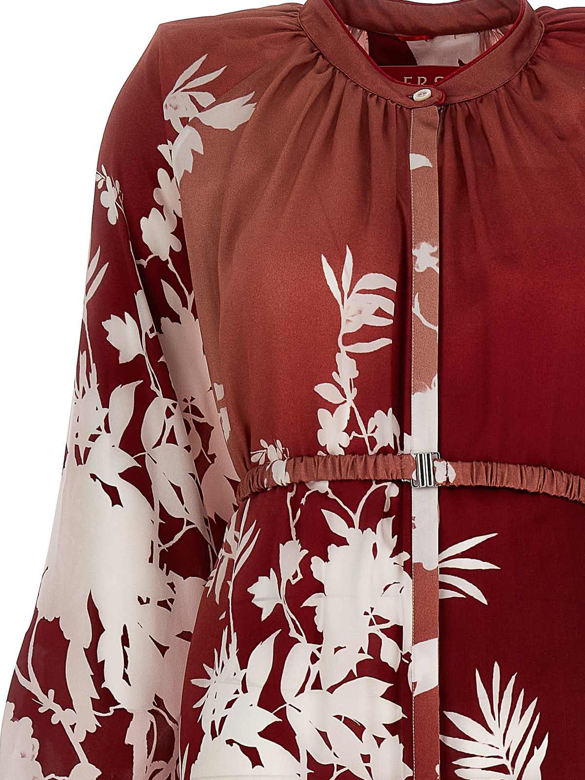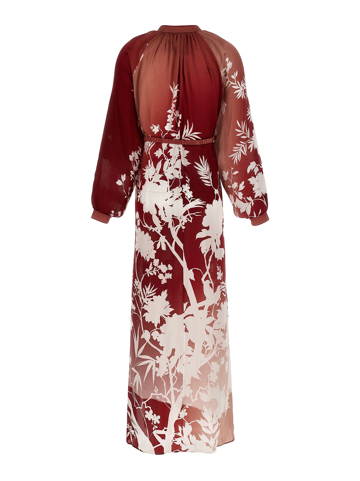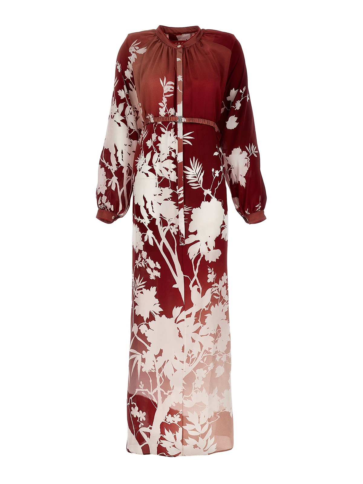 Aristonium i' long silk dress with all-over print a front button closure a crewneck and long cuffed sleeves