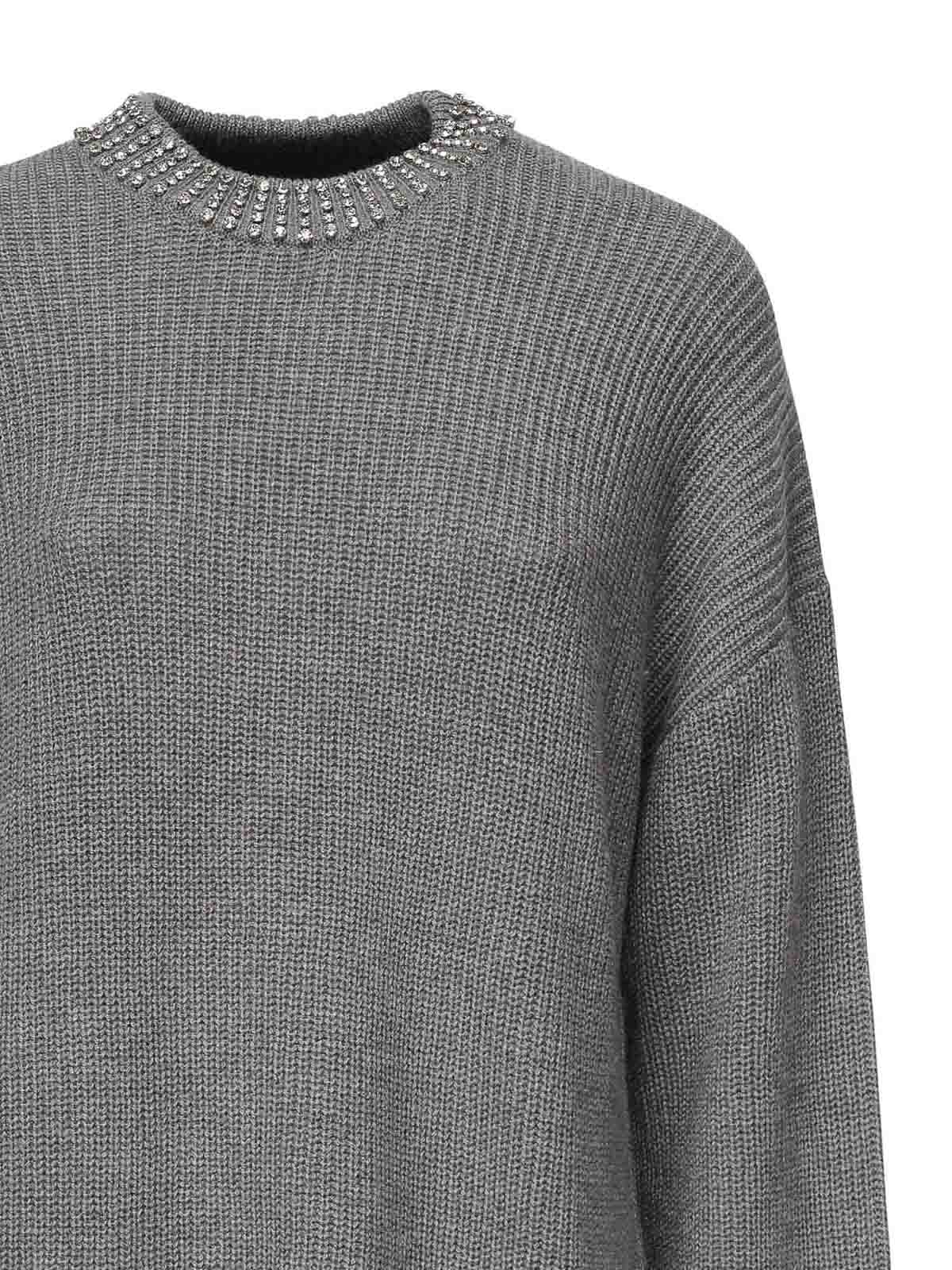Crew neckline with rhinestones low armholes relaxed fit long sleeves size shown in photo is xxs color gray