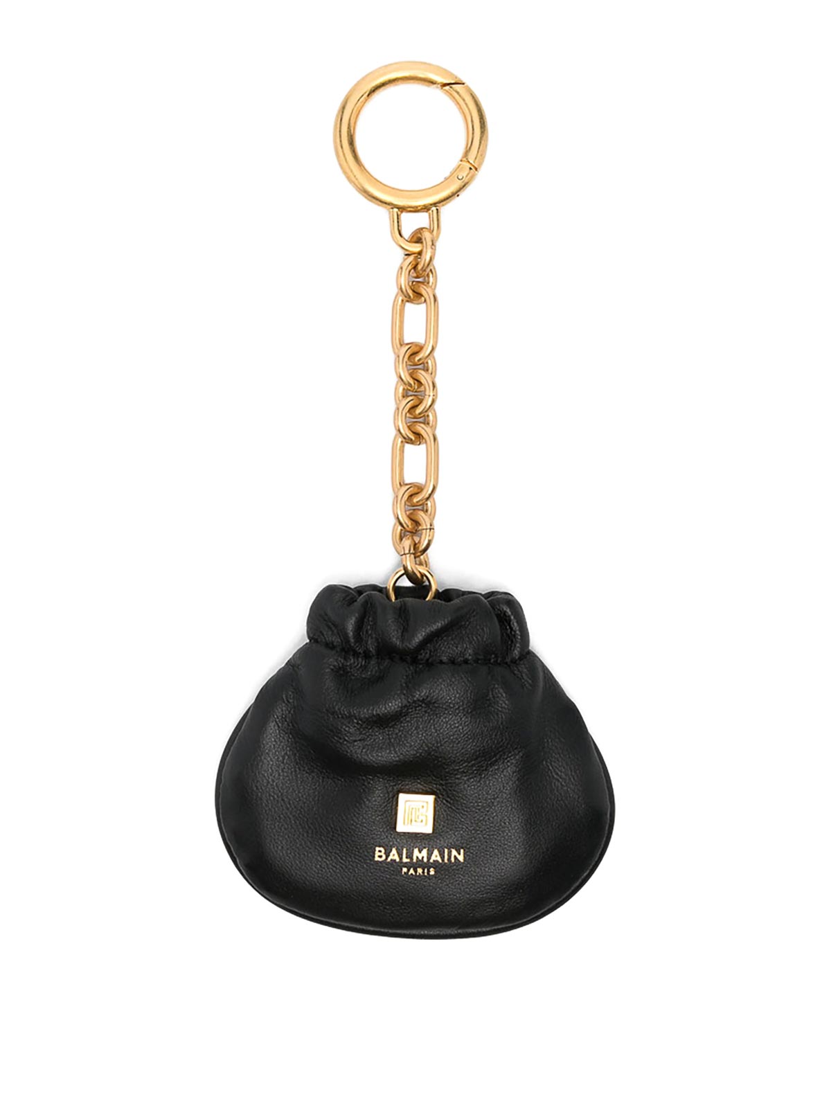 Black gold-tone hardware clip fastening chain detail gathered detailing logo detail