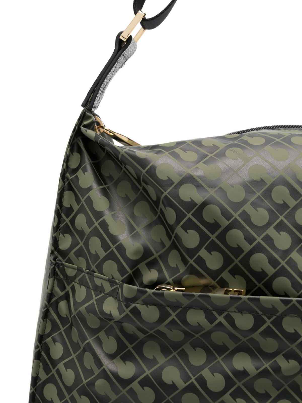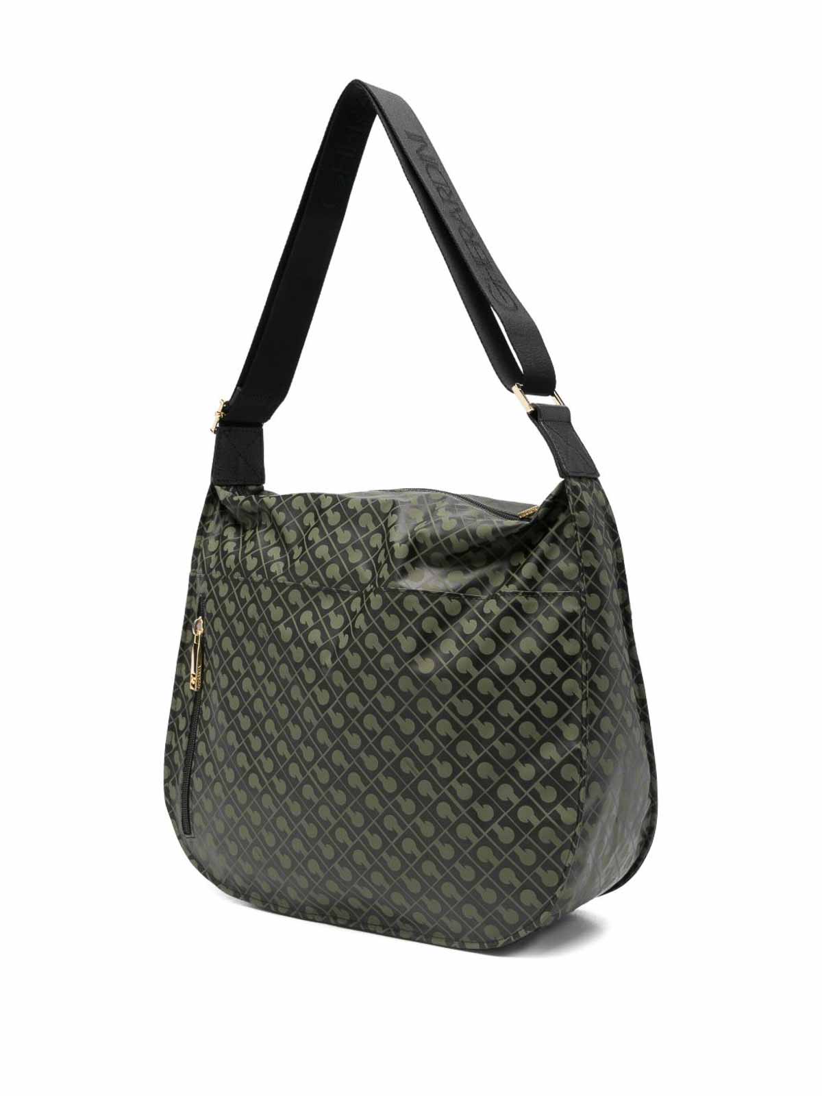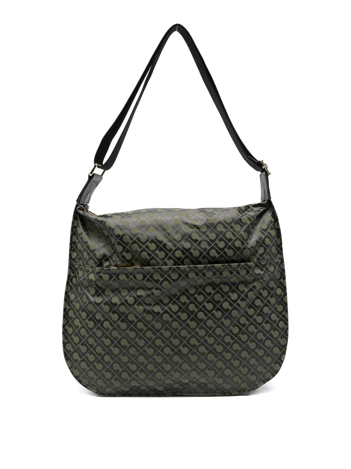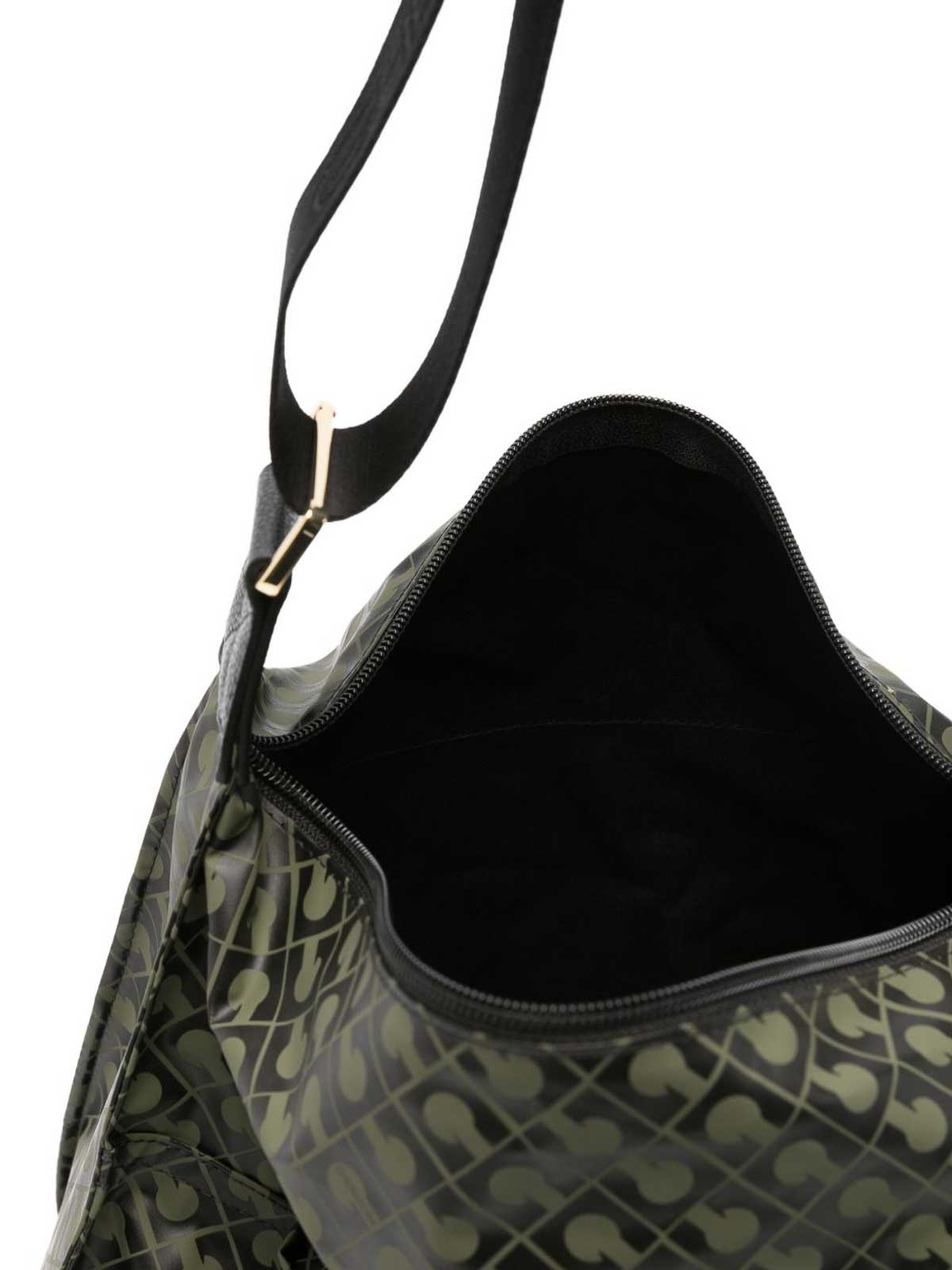 Green monogram pattern zip adjustable shoulder strap main compartment