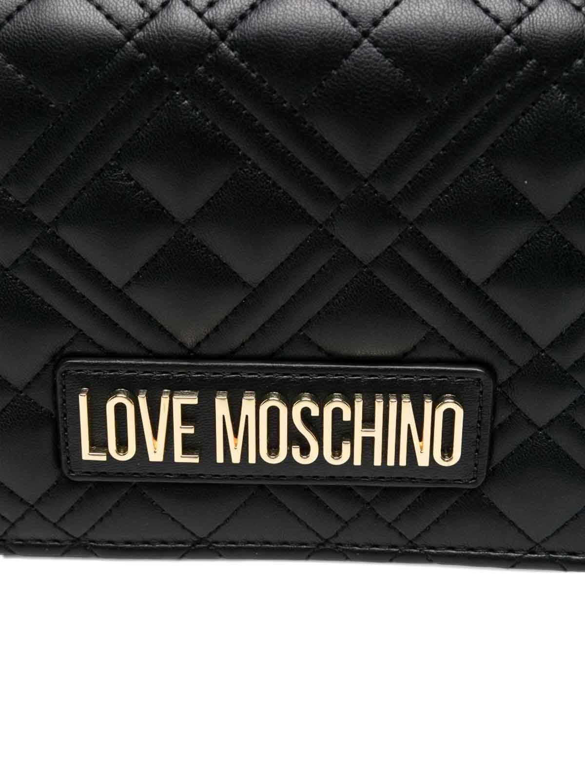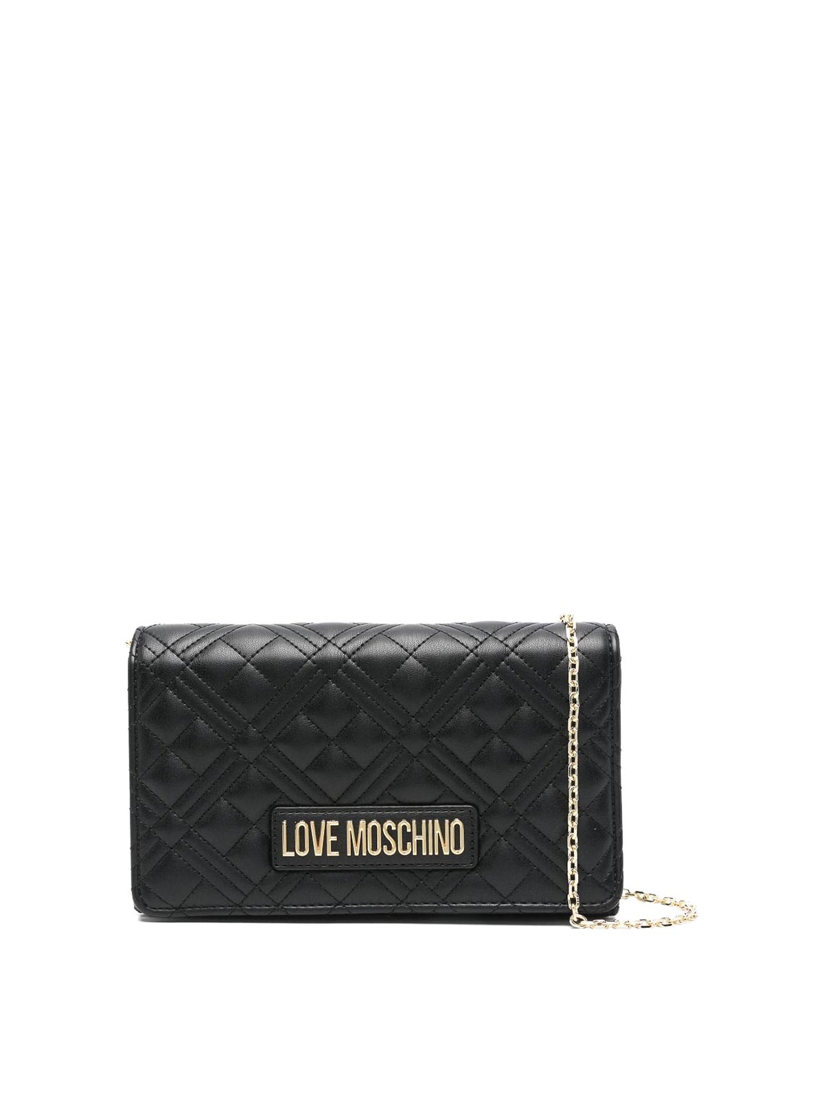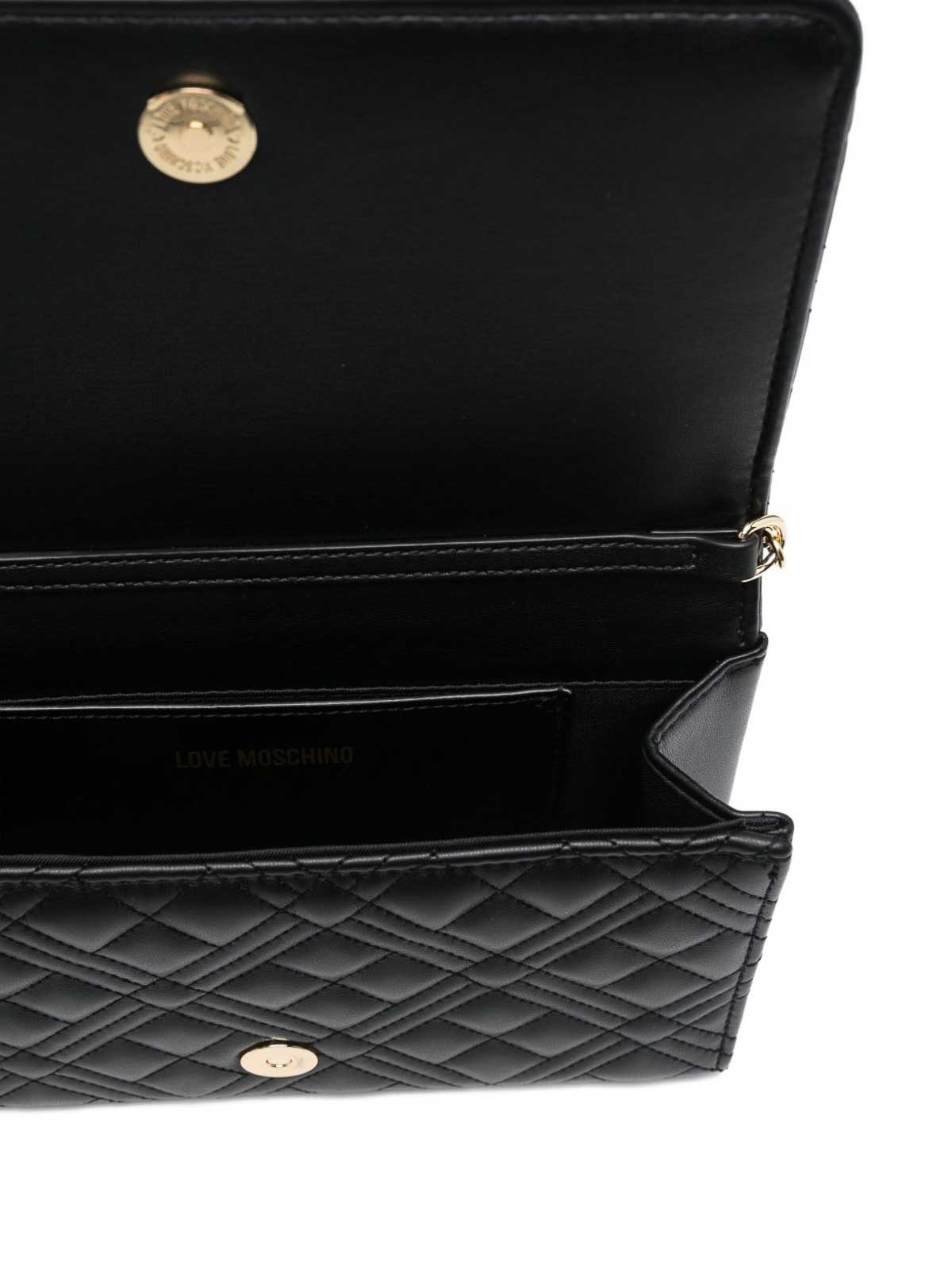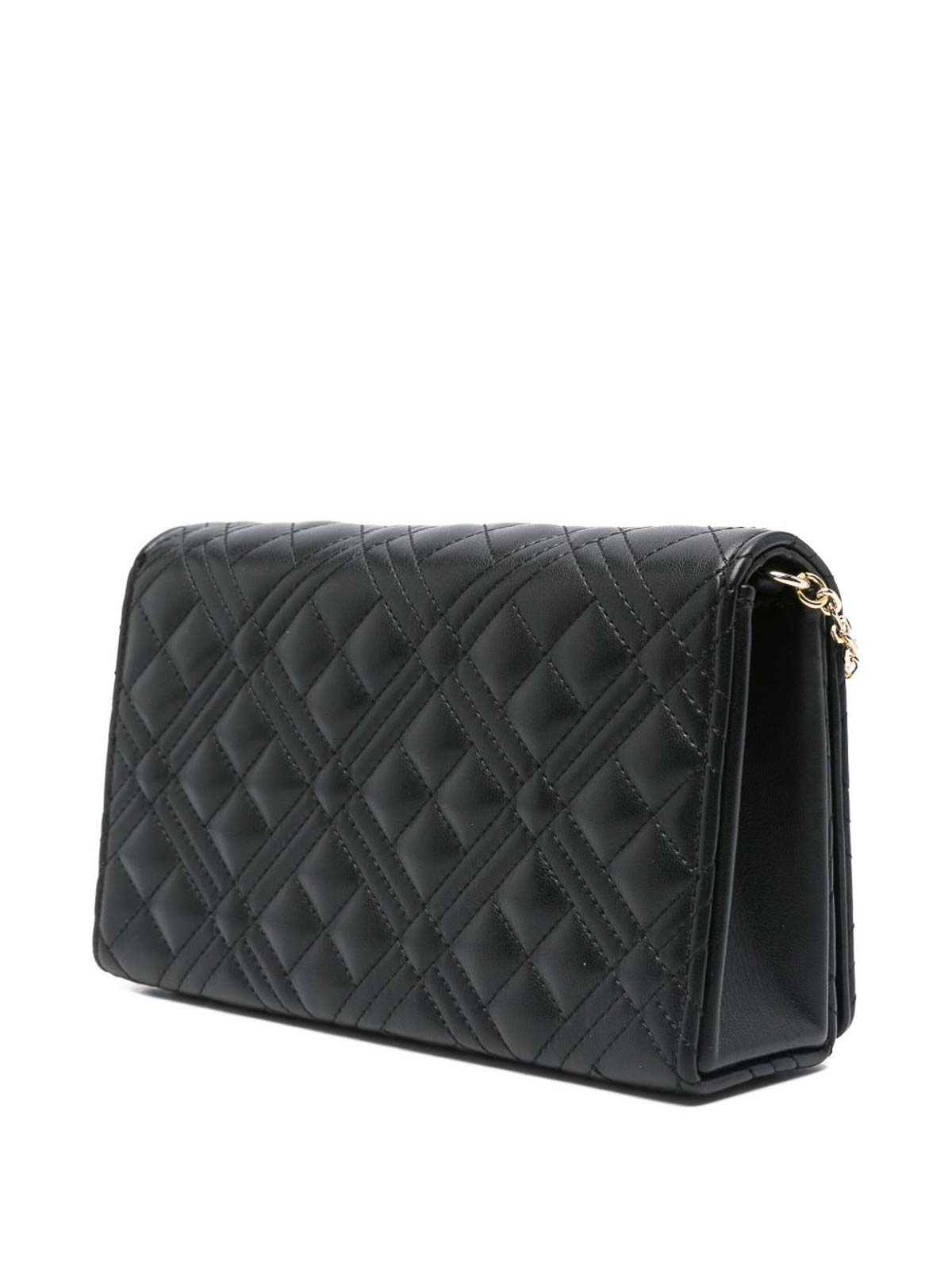Black quilted finish, tone logo lettering chain strap flap magnetic