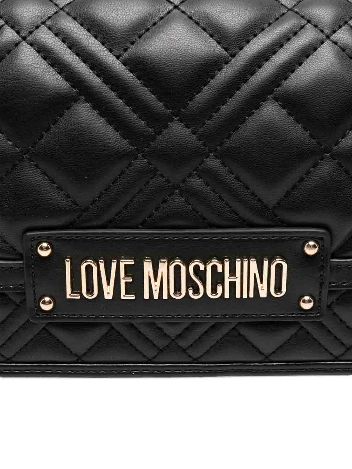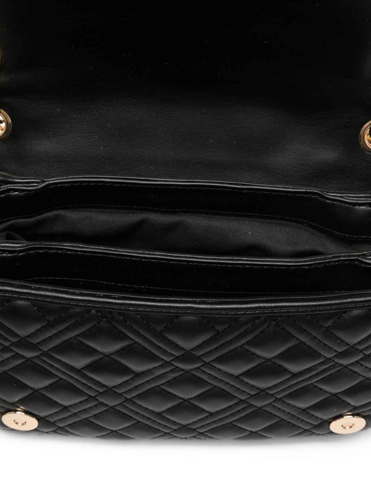 Black quilted pattern, tone hardware logo plaque chain strap flap