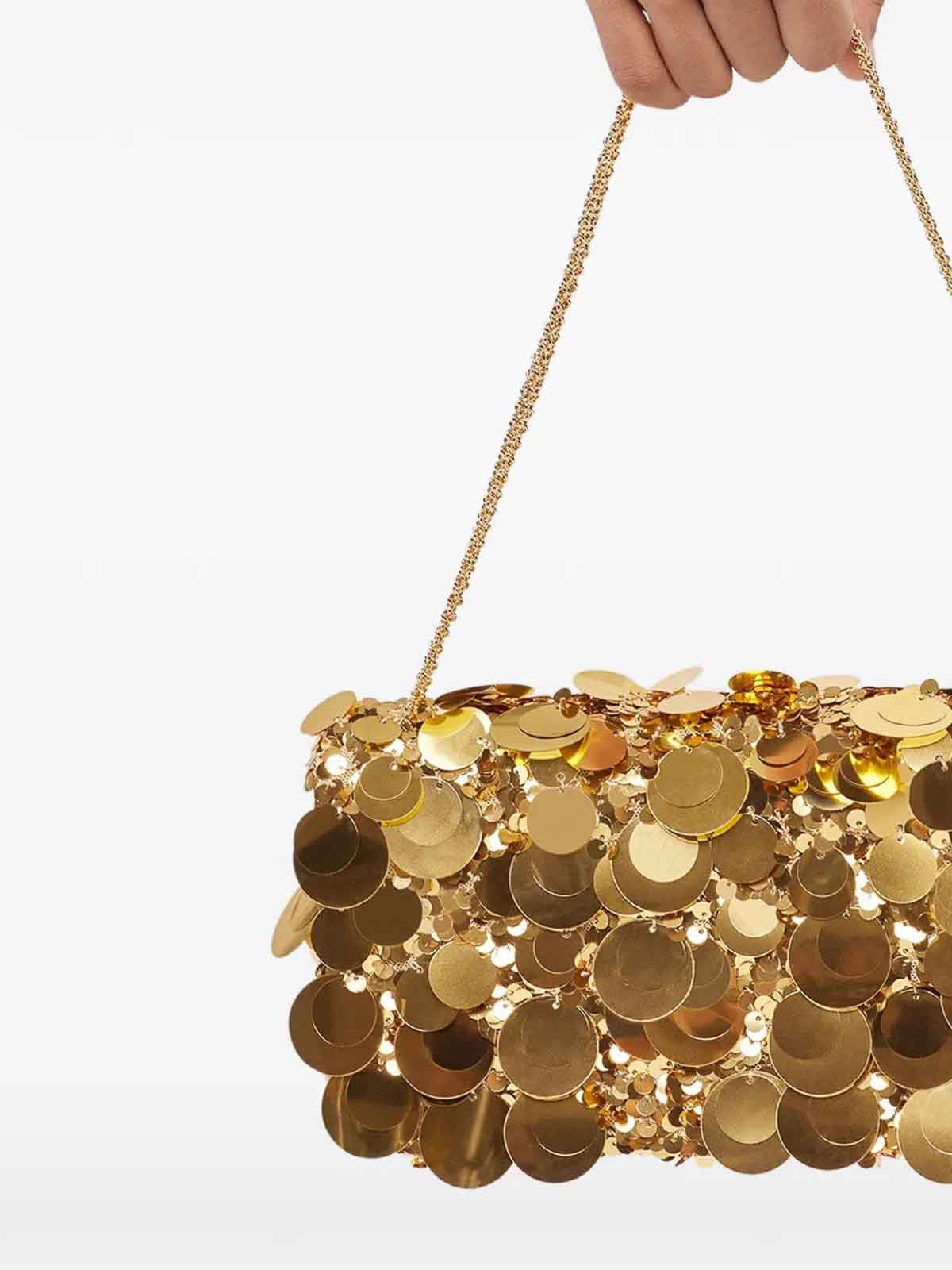 shoulder bag with disc sequins and shoulder strap.