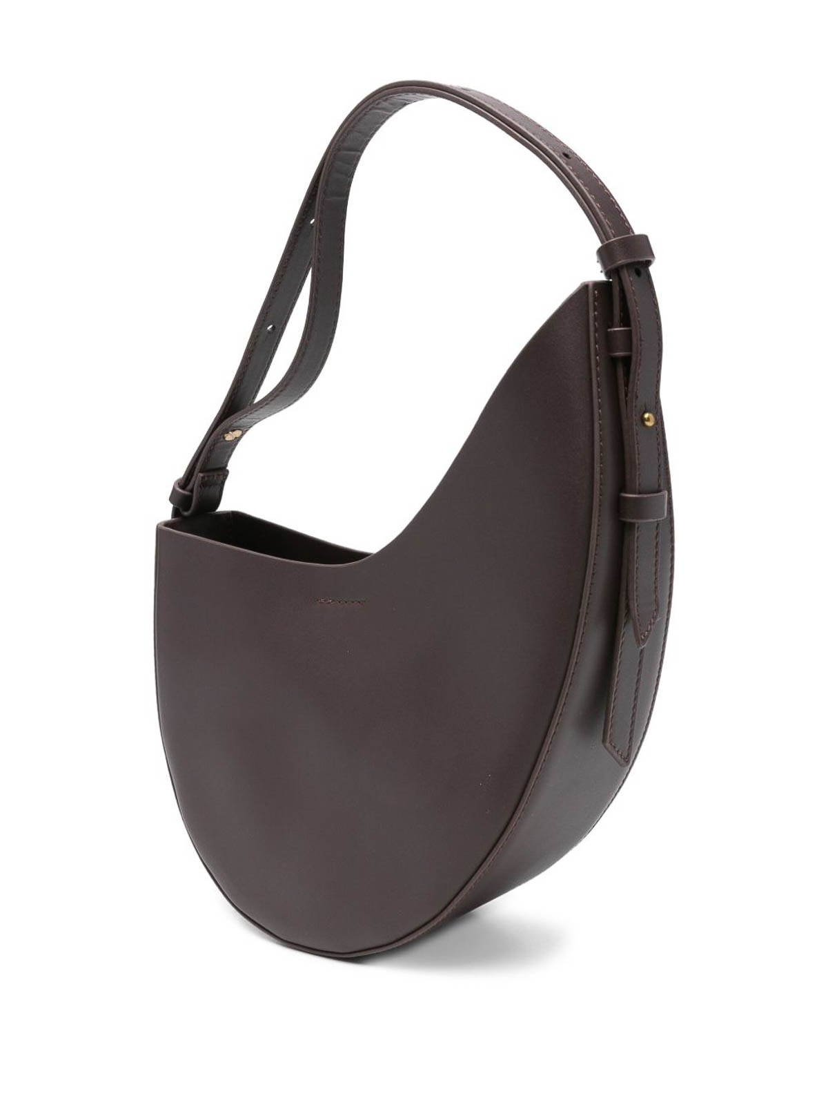 Brown curved shape single top detachable pouch, tone hardware half, moon silhouette