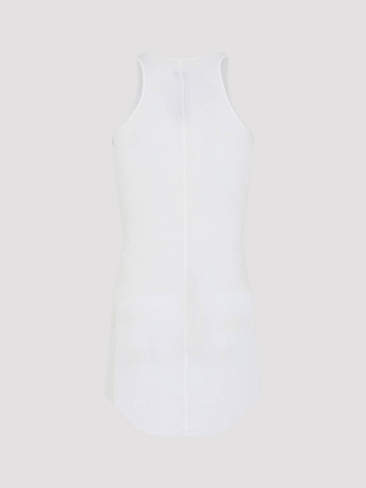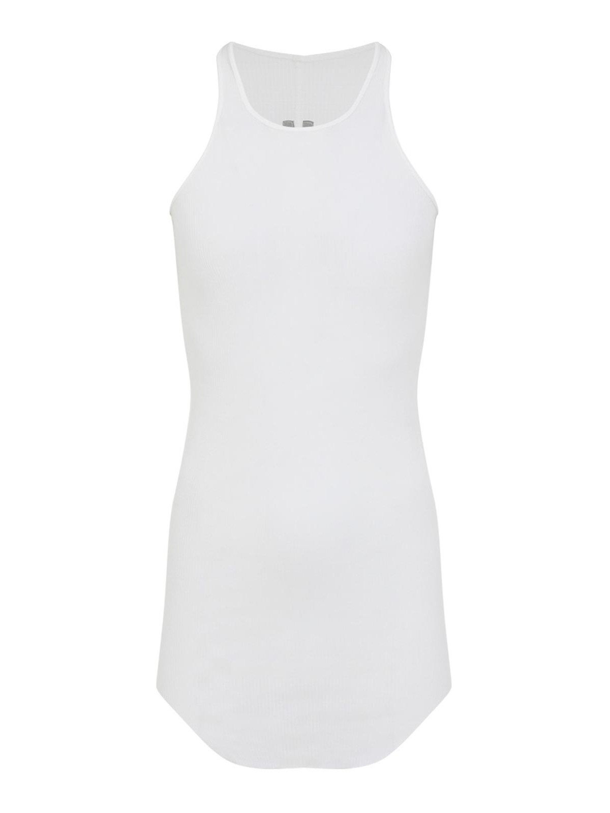 Rick owens basic rib white viscose tank top. classic tank top crafted from ribbed white viscose and silk, featuring a halter neck, a sleeveless construction, the iconic central topstitching at the back, and the signature rounded hem.