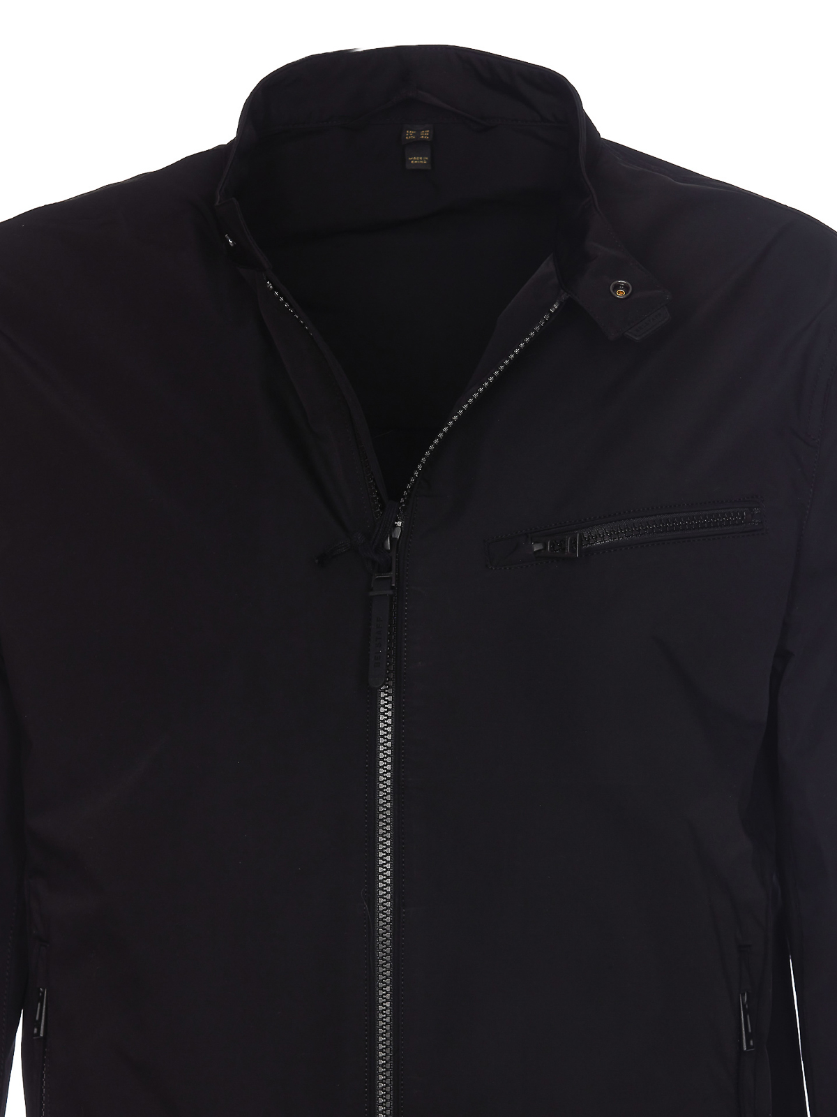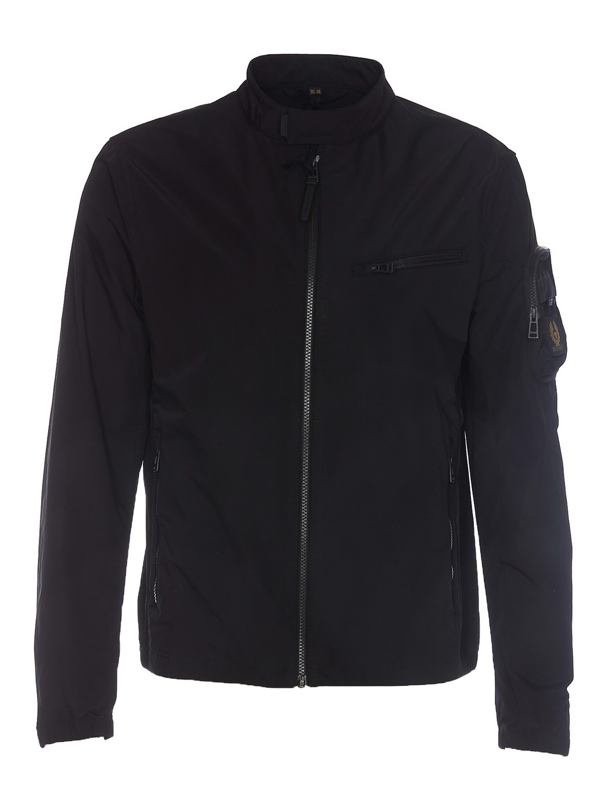 Belstaff black beam jacket with frontal zip closure zip pockets on the front lateral zip pocket detail with logo on sleeves
