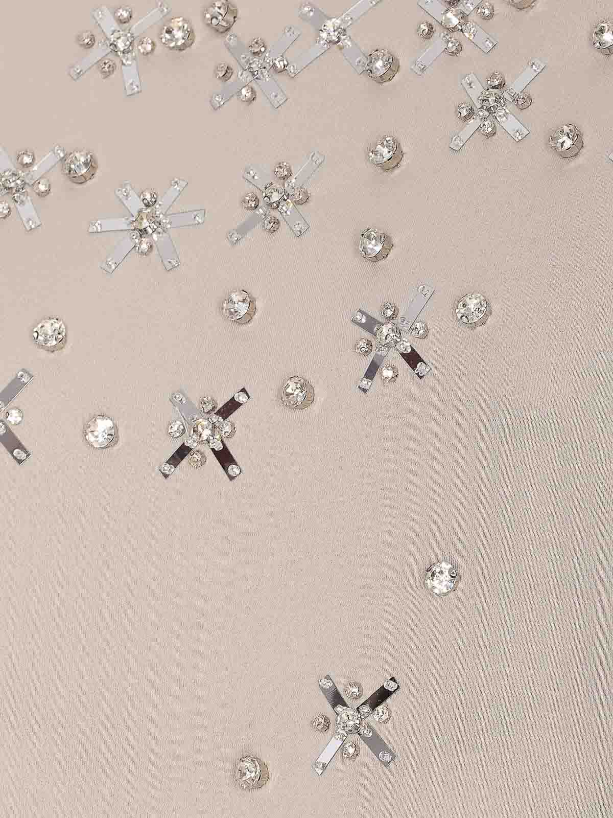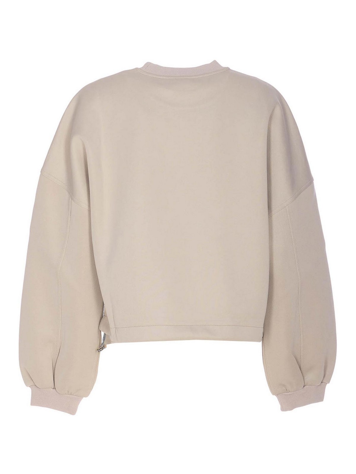 Pinko beige bibiana sweatshirt, crewneck, application crystals details, coulisse on waist