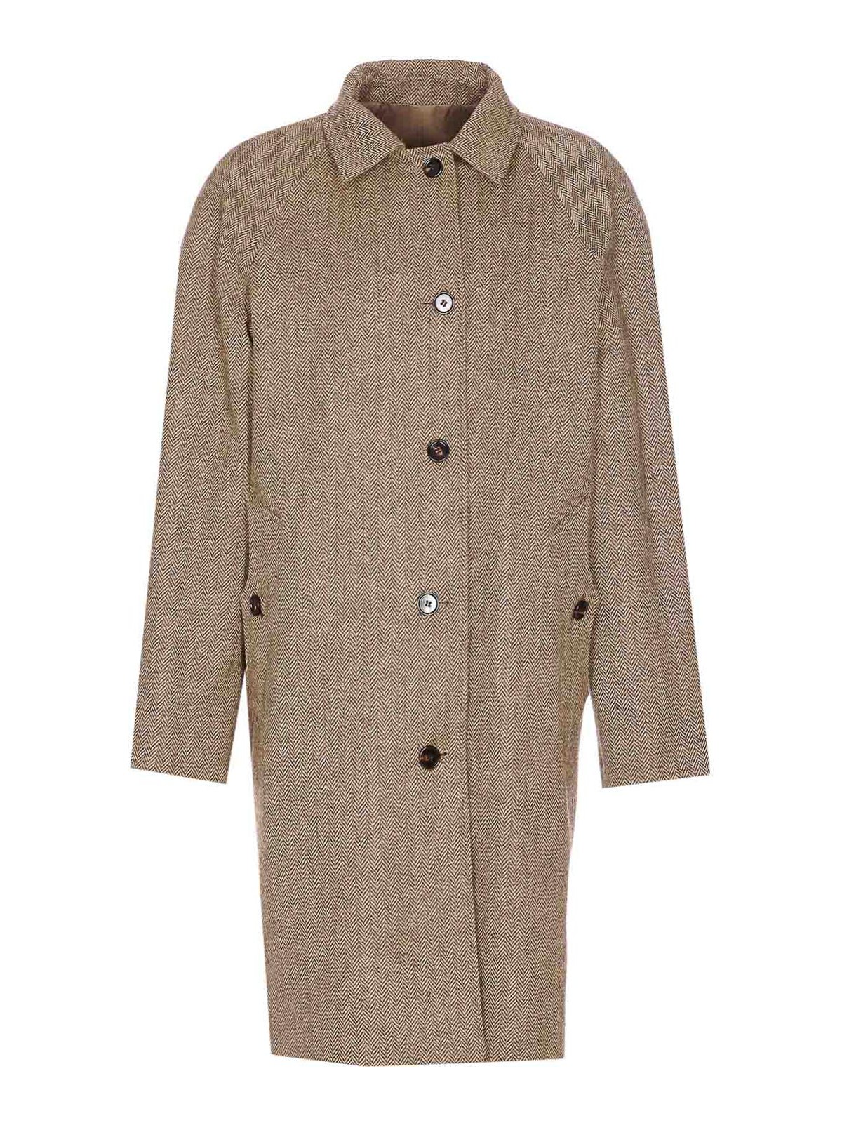 Burberry beige chevington trench buttons regular collar long slevees pockets reverse model one side with chevron motif