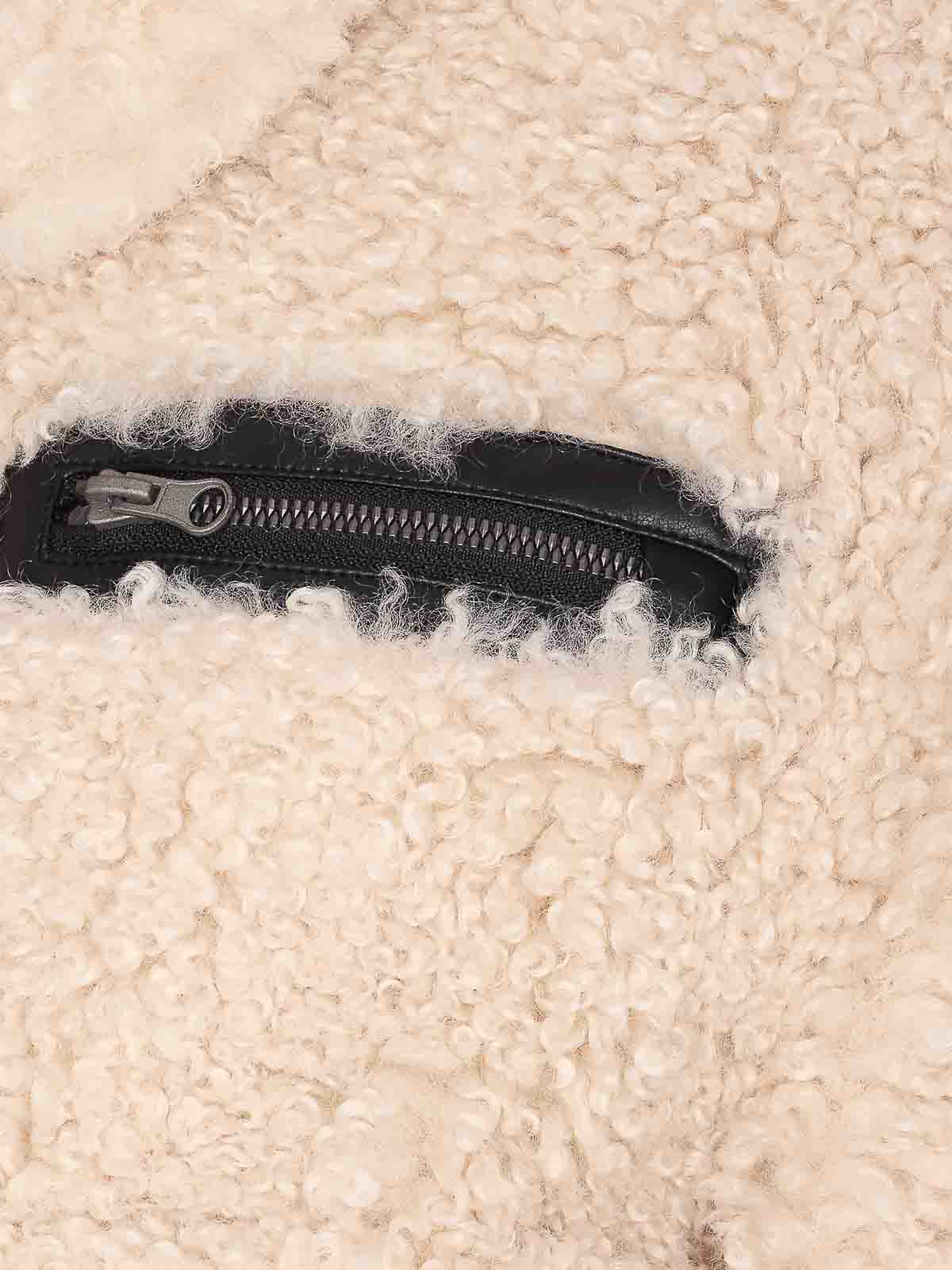 Save the duck beige teddy jacket with frontal zip closure, long sleevs, regular collar, zip pockets
