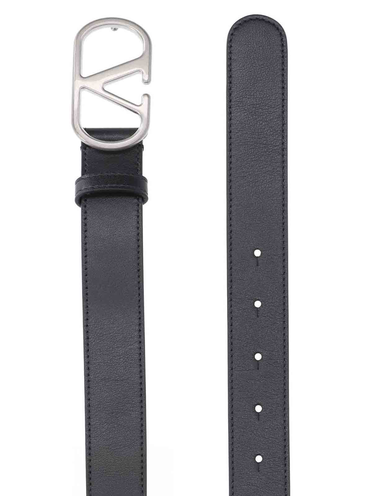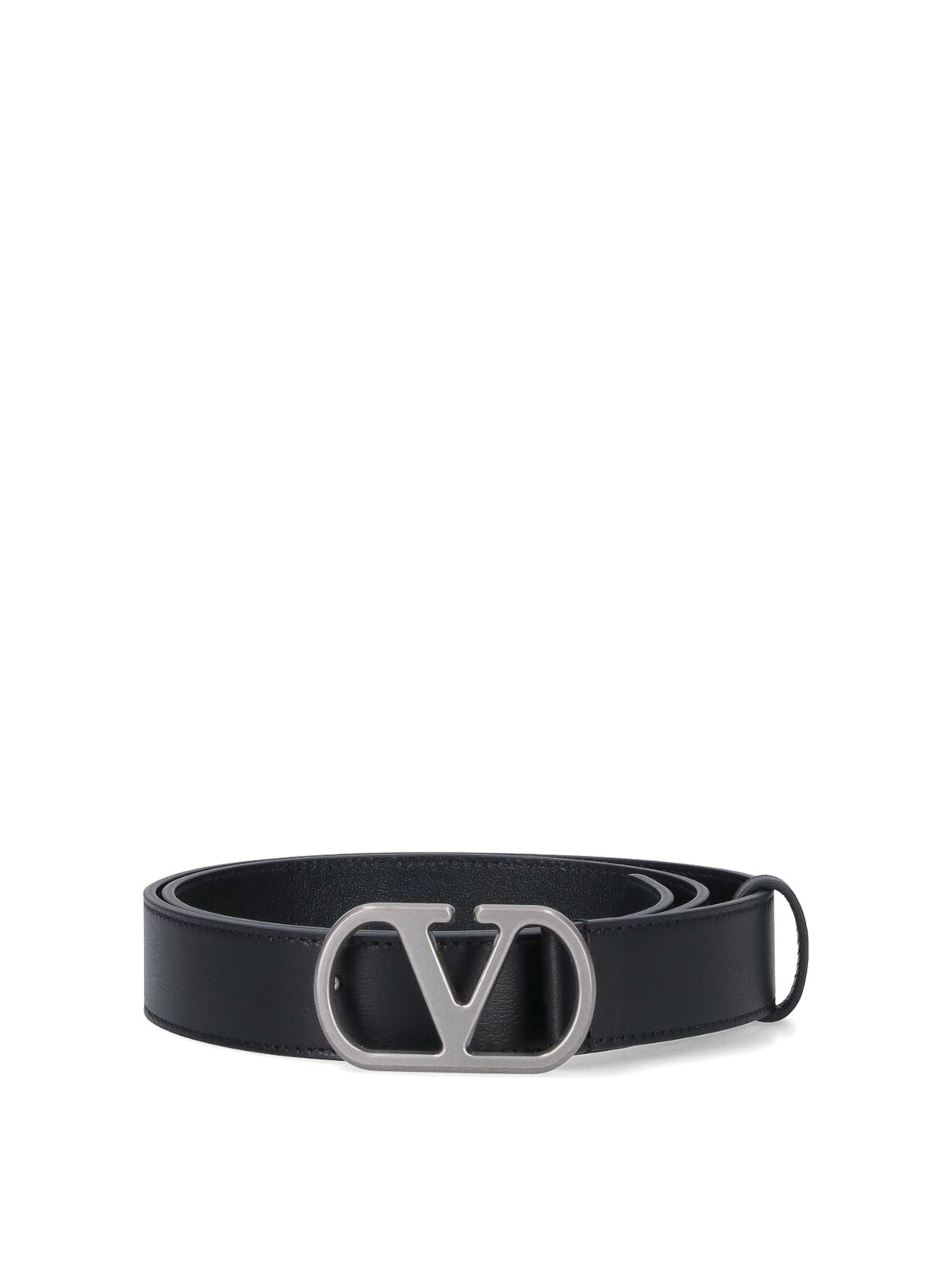 Vlogo Signature belt Valentino Garavani, in black veal leather, silver metal logo buckle, adjustable.