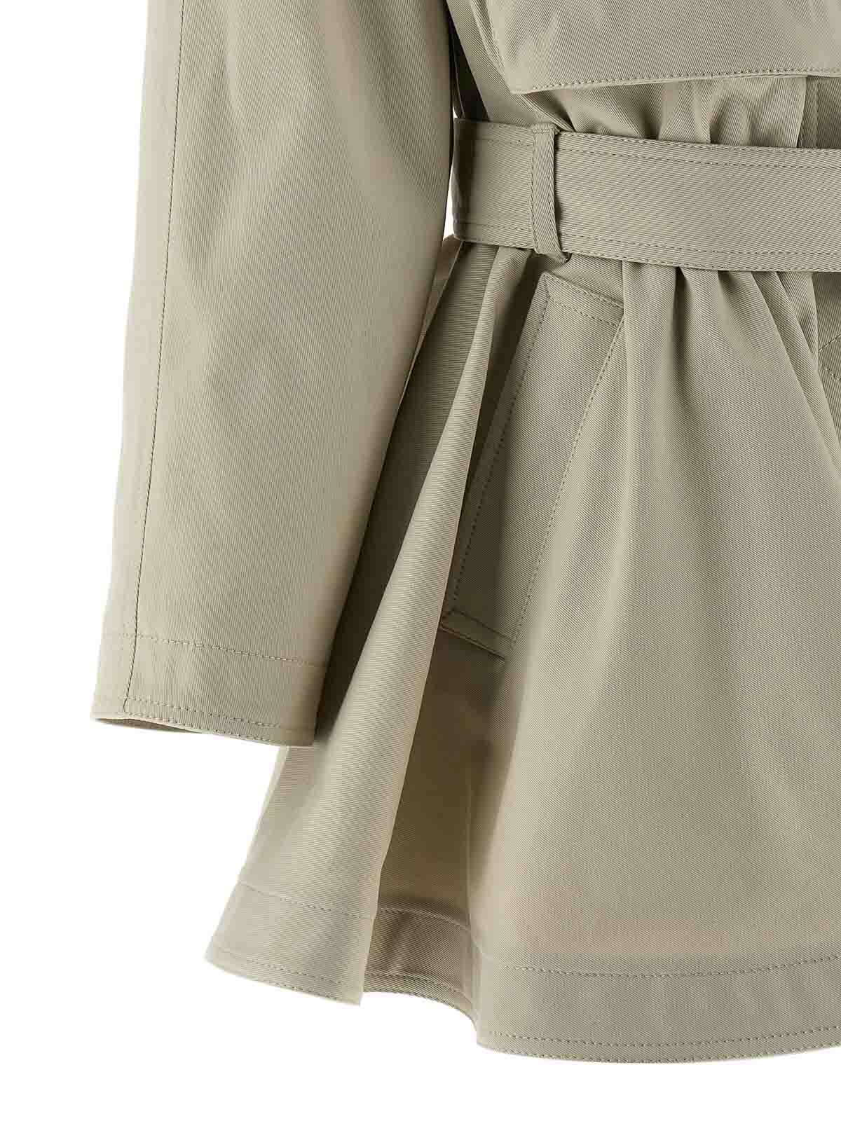 Suede effect fabric dress with shirt collar, front pockets, front zip closure, elastic waistband and curl, side pockets, loops at the waist and adjustable belt with buckle.
