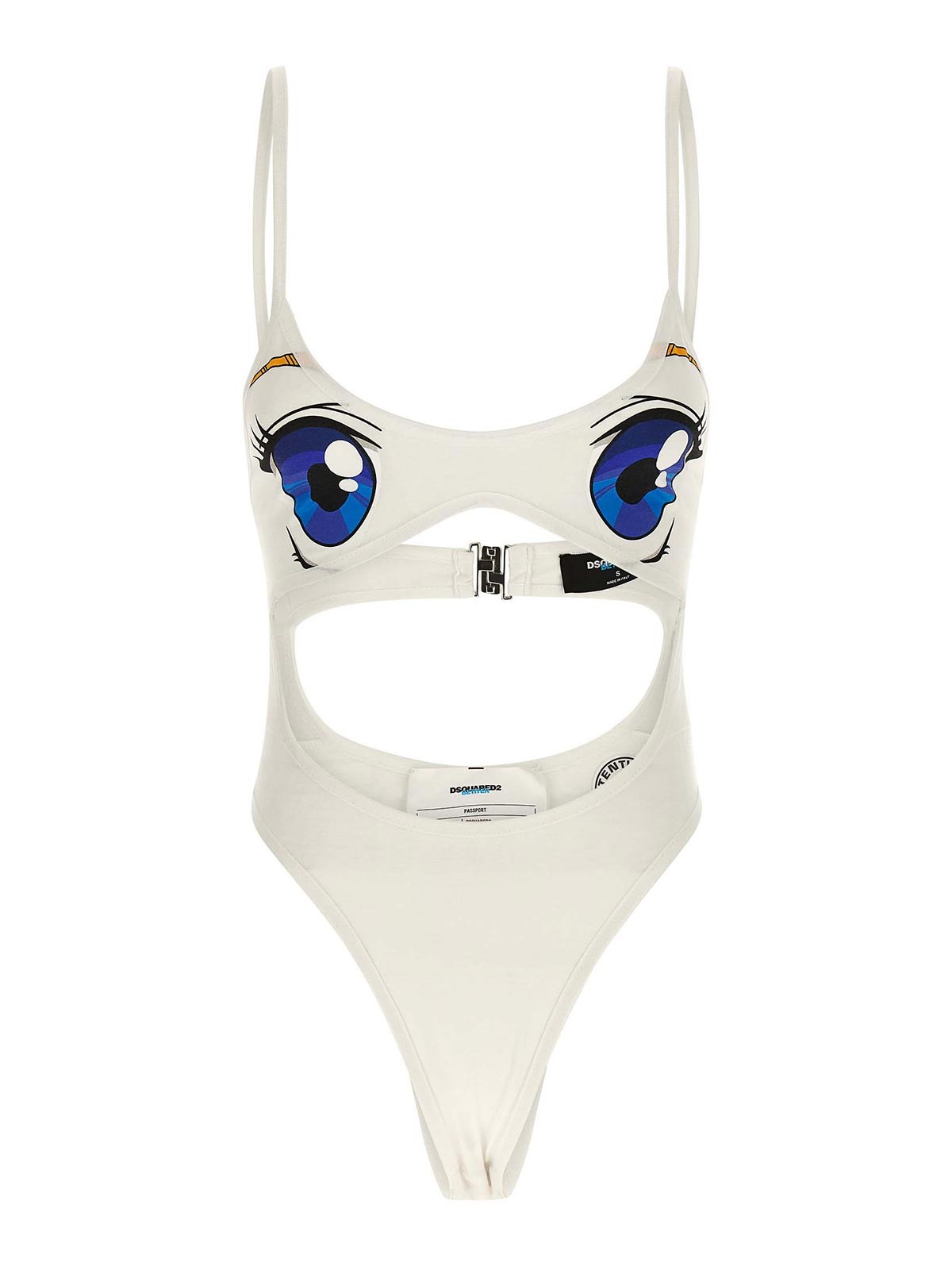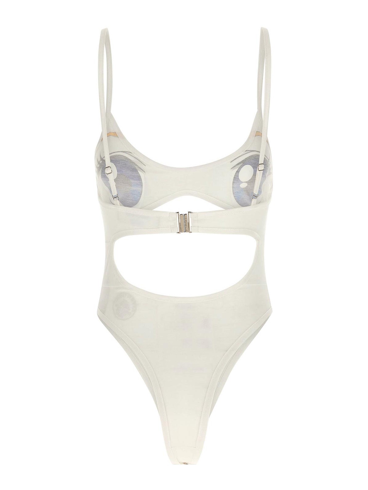 Bettter x dsquared2 cotton bodysuit with front print, cut-out details on the front and back, adjustable straps, round neckline on the front, back hook closure, snap buttons on the hem, high-leg.