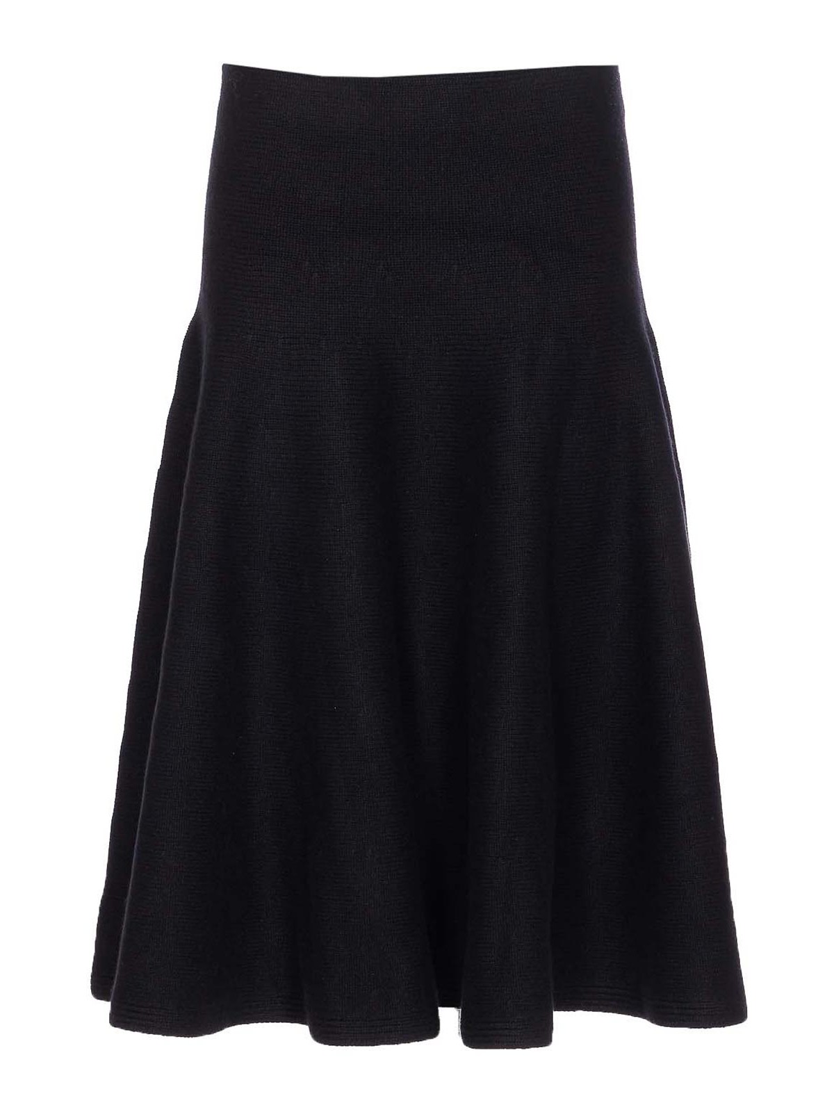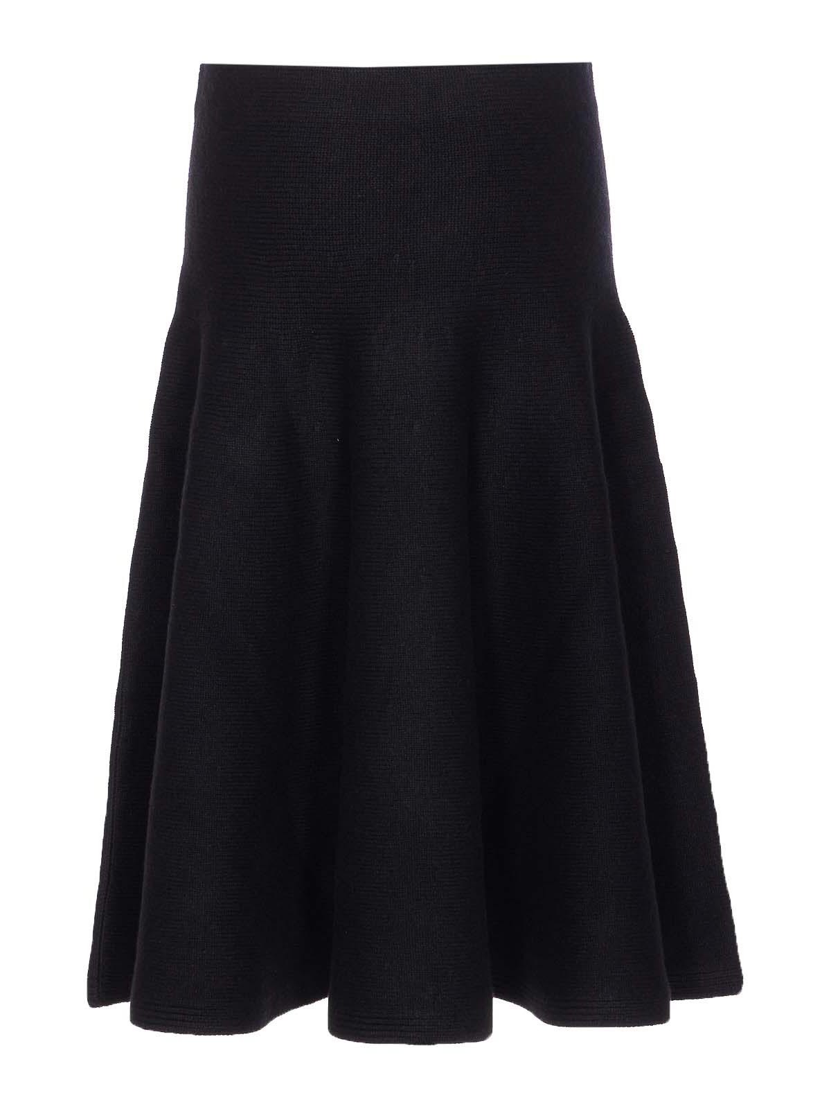 Alaia black a-line skirt, elasticized on waist, knitted, flared model, midi