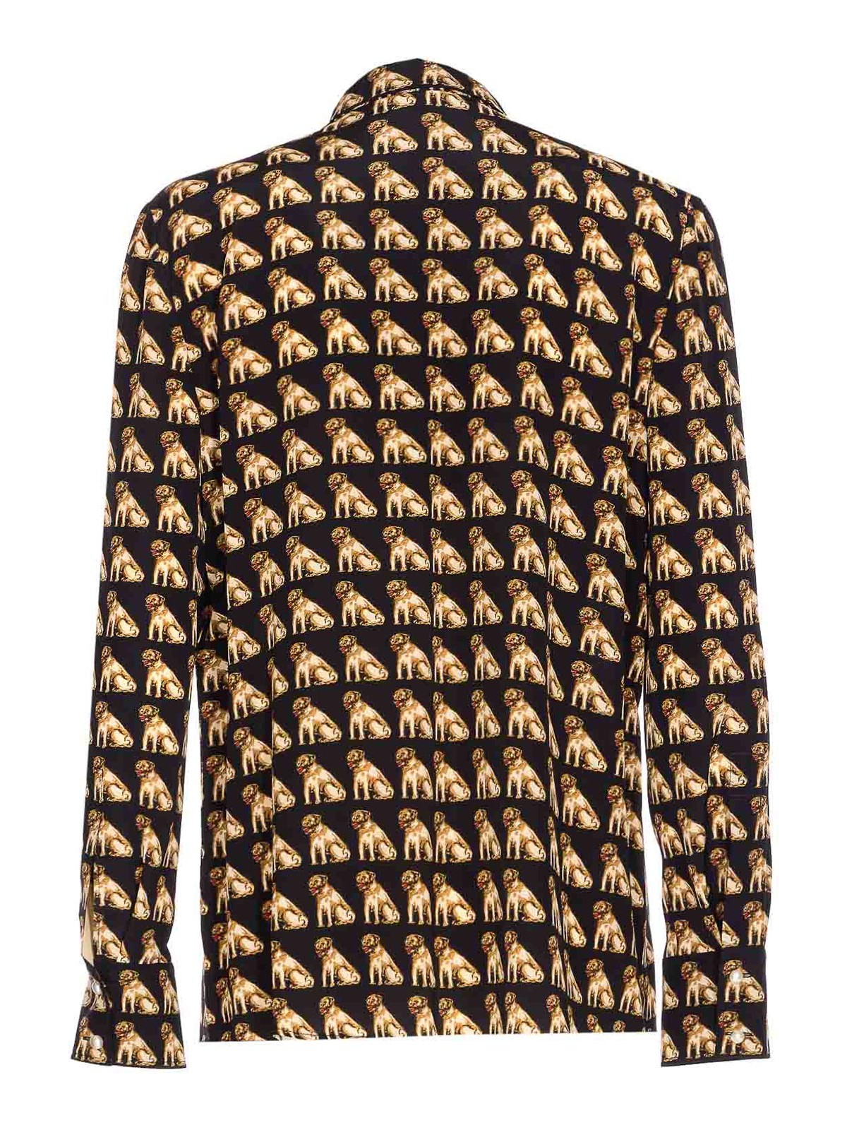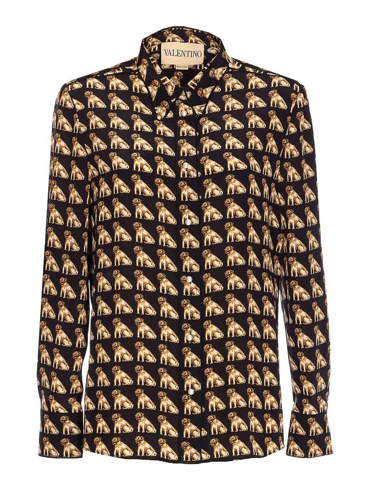 Valentino garavani black and beige shirt crewneck buttons classic collar petit charles print