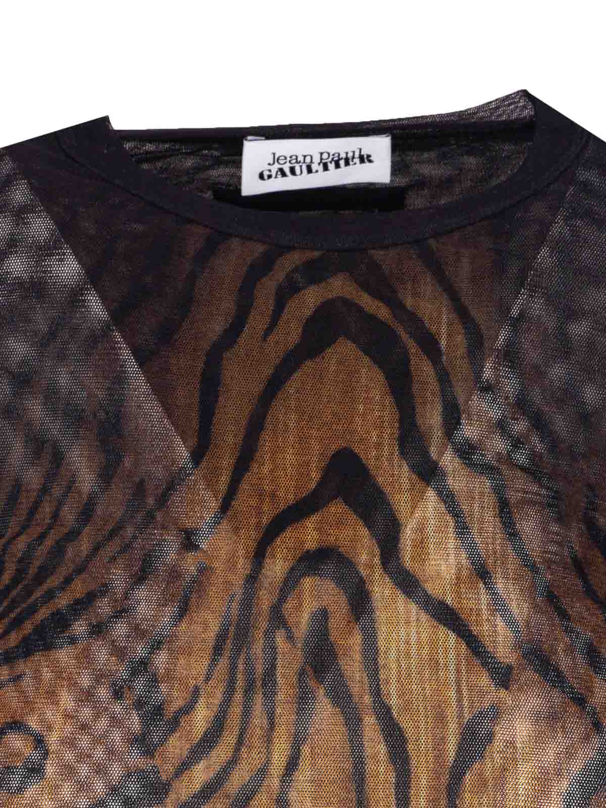 Jean paul gaultier black and brown mesh long slevees crewneck the print transparent effect