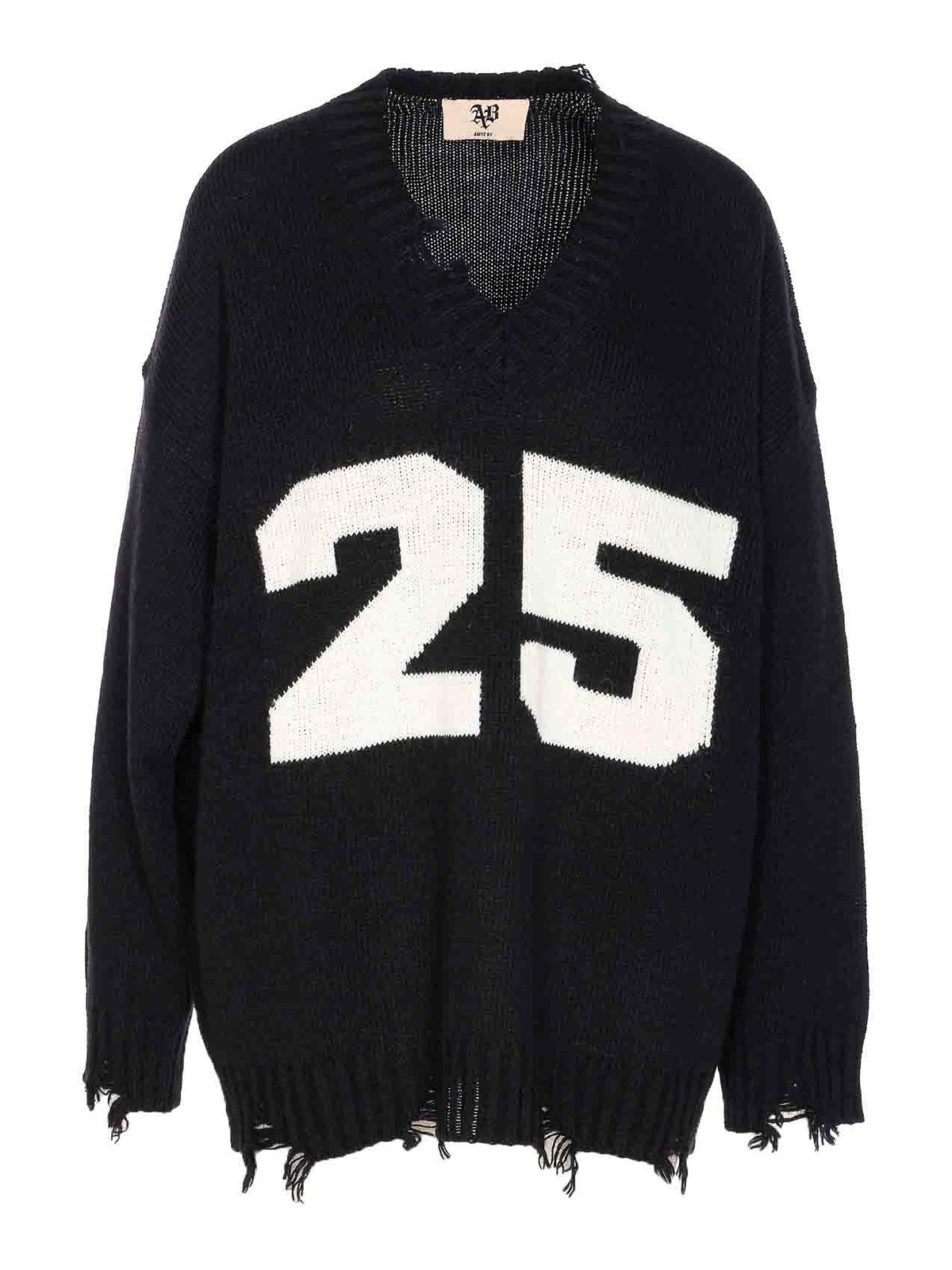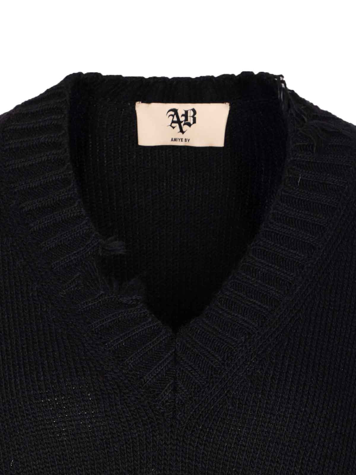Aniye by black college sweater, v-neck, long sleeves, embroidered, distressed effect