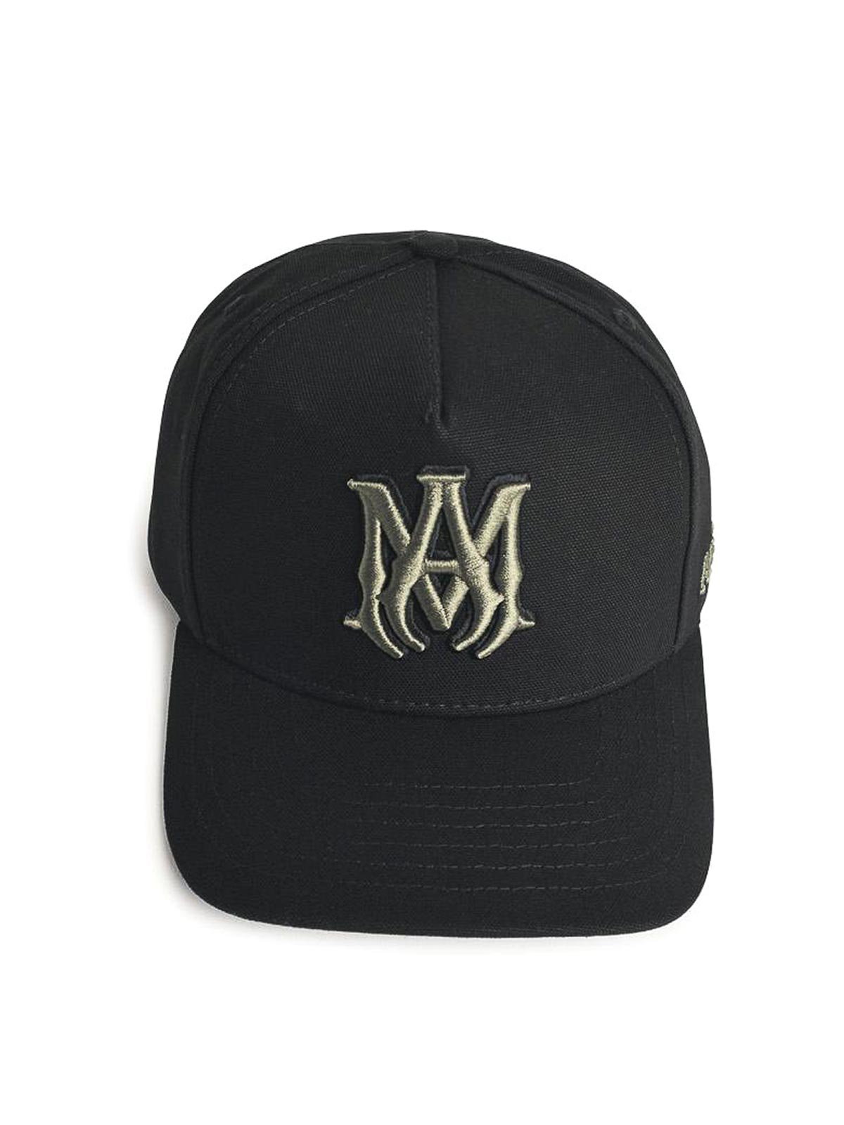 Hard visor, embossed army green front logo, embroidered side logo, back adjustment with snap buckle with logo metal plate, back label with contrast logo