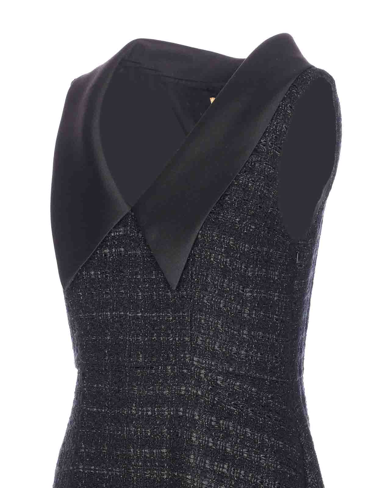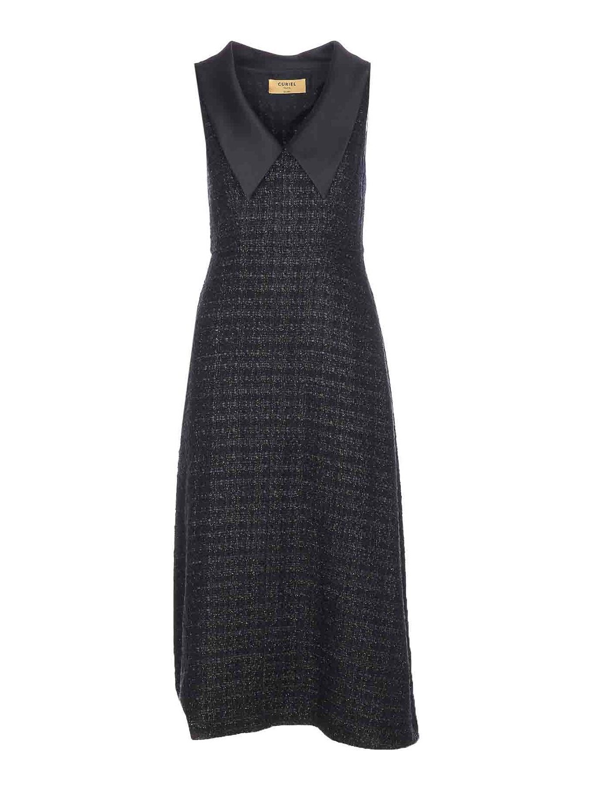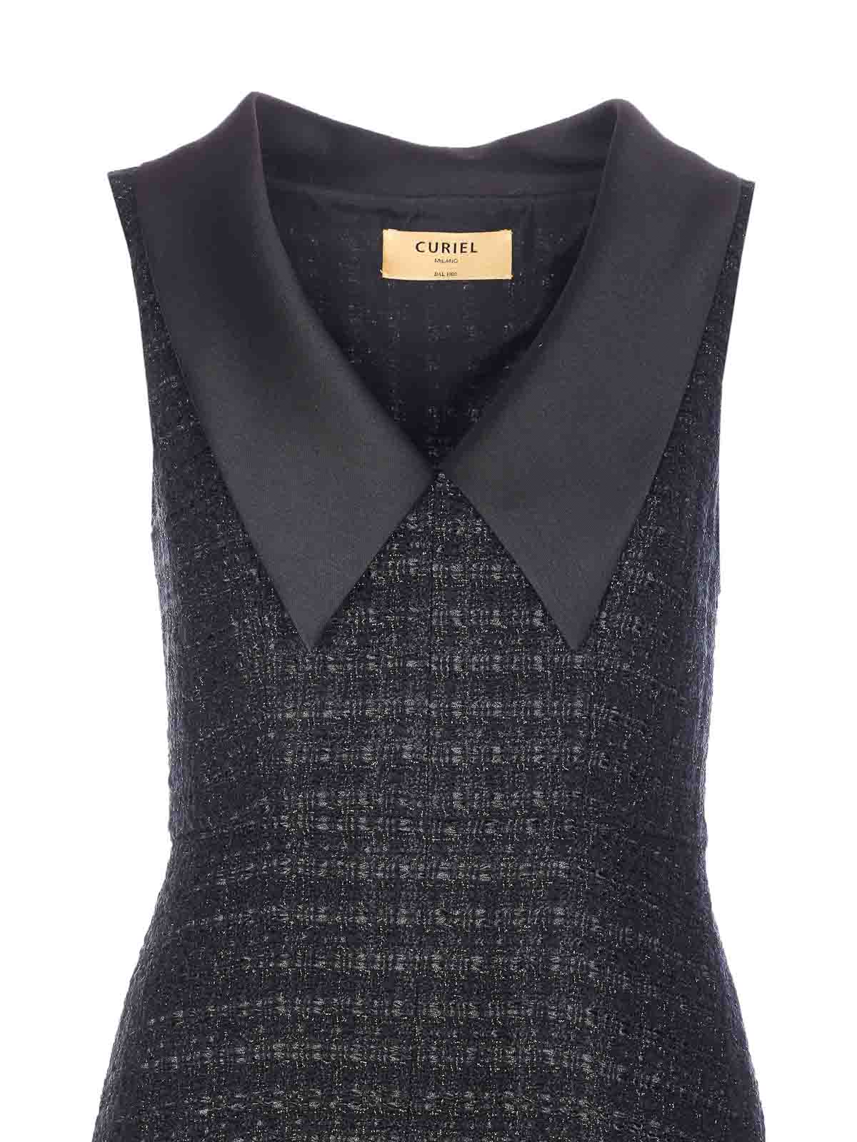 Curiel black dress, lateral zip closure, sleeveless, v-neck, boucle' effect, lateral pockets