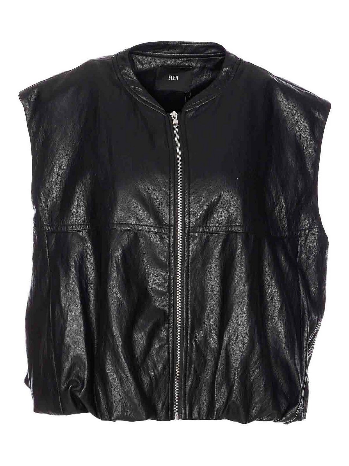 Eleh black faux vest zip sleeveless elasticized at bottom