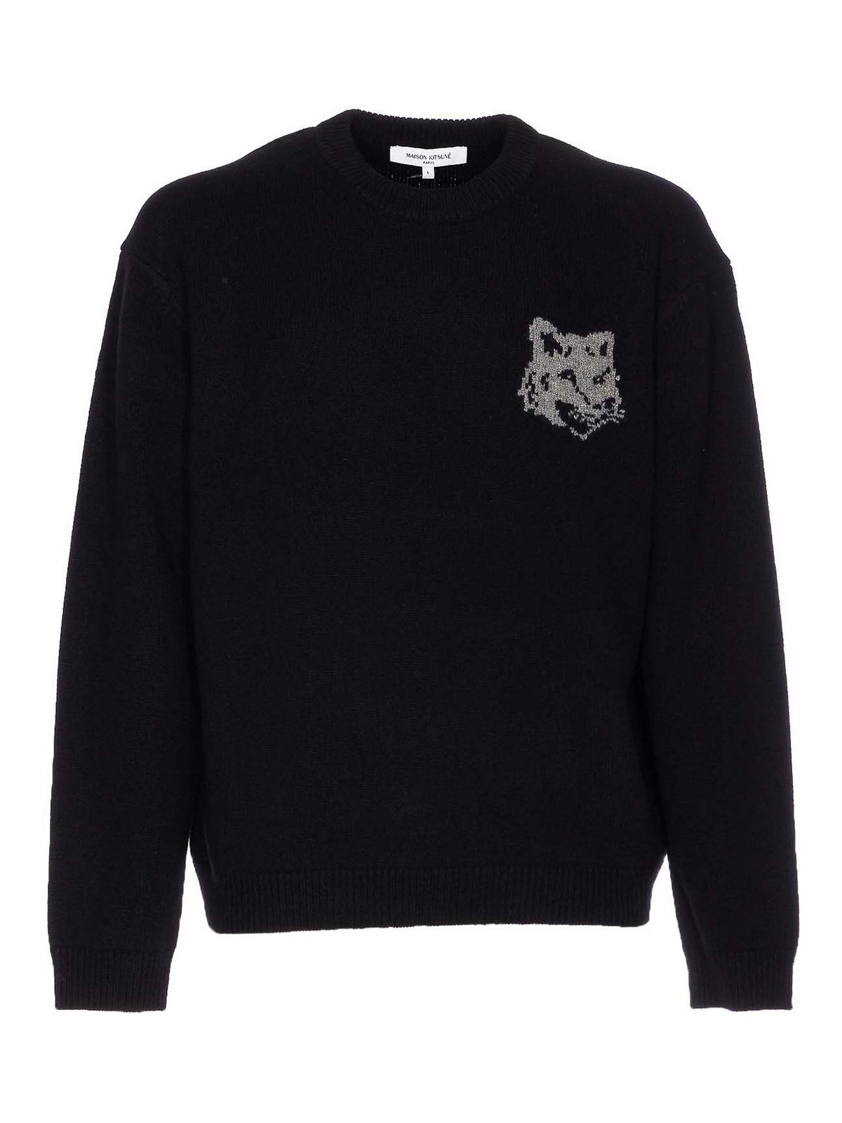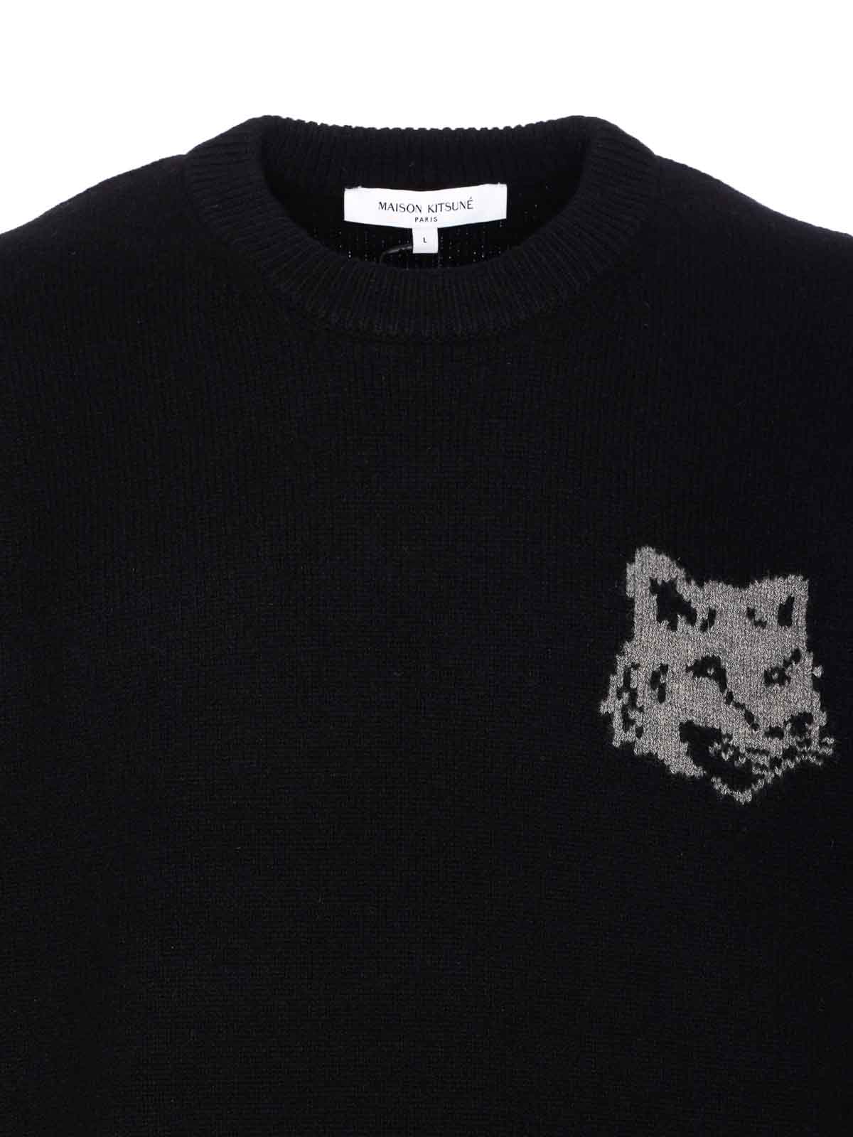 MAISON KITSUNÉ: crew necks - Black Fox Head Intarsia Sweater