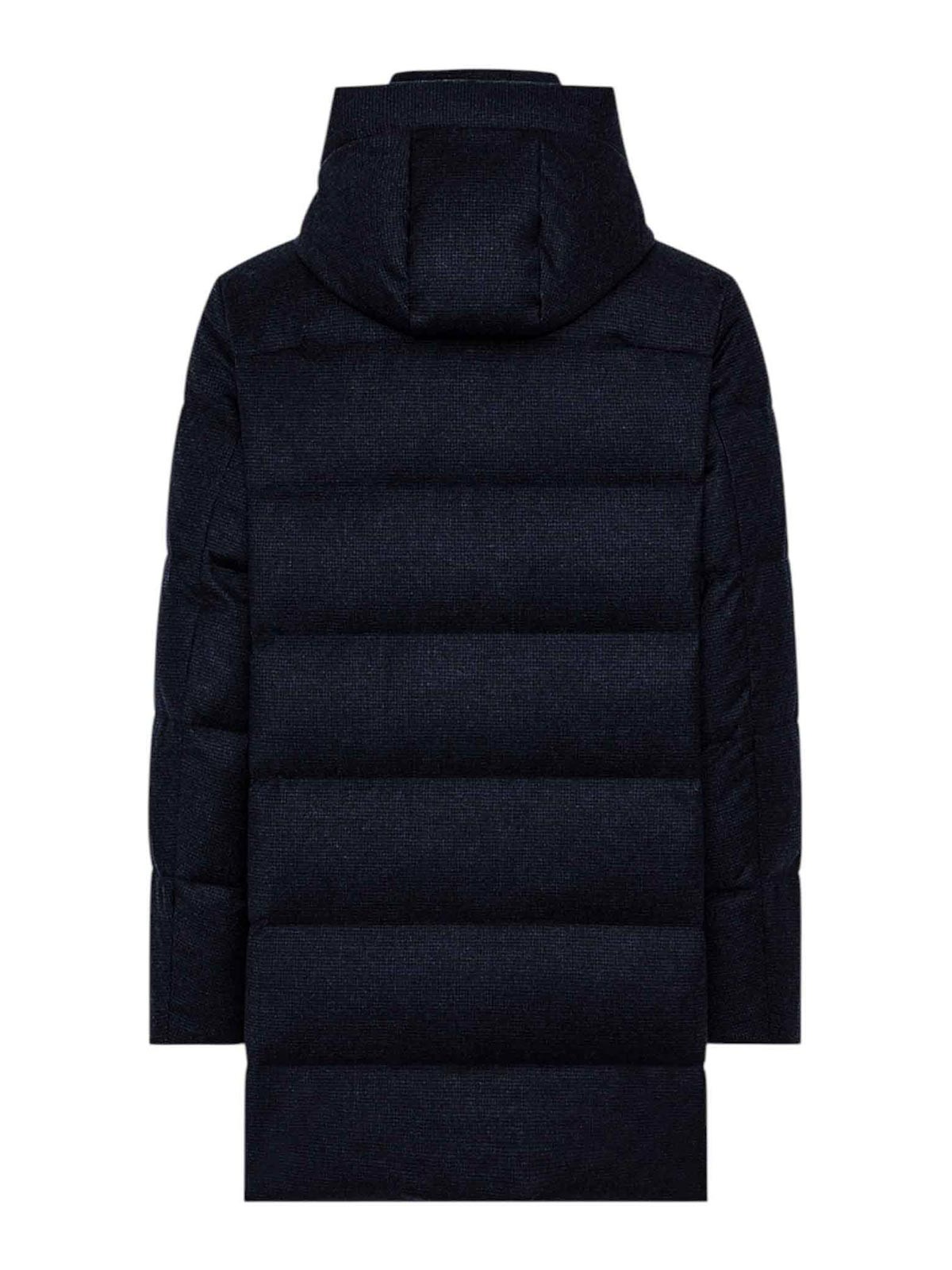 Duno Men's Cortina Men Long Jacket with an elegant and refined character made in precious with a touch of to guarantee softness and upper comfort the horizontal quilting and the clean line enhance the silhouette while the fixed hood and the front with zip covered by Patta offer maximum protection from the cold a versatile and perfect garment to face the main characteristics of the main features. and Patta with automatic buttons fixed hood padded horizontal quilting side pockets with fillet with hidden zip background and straight and soft fine and soft cuffs