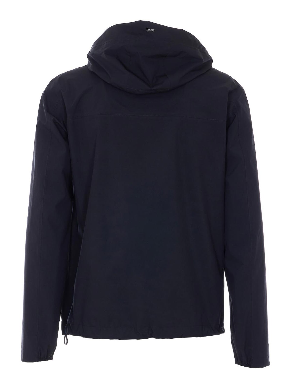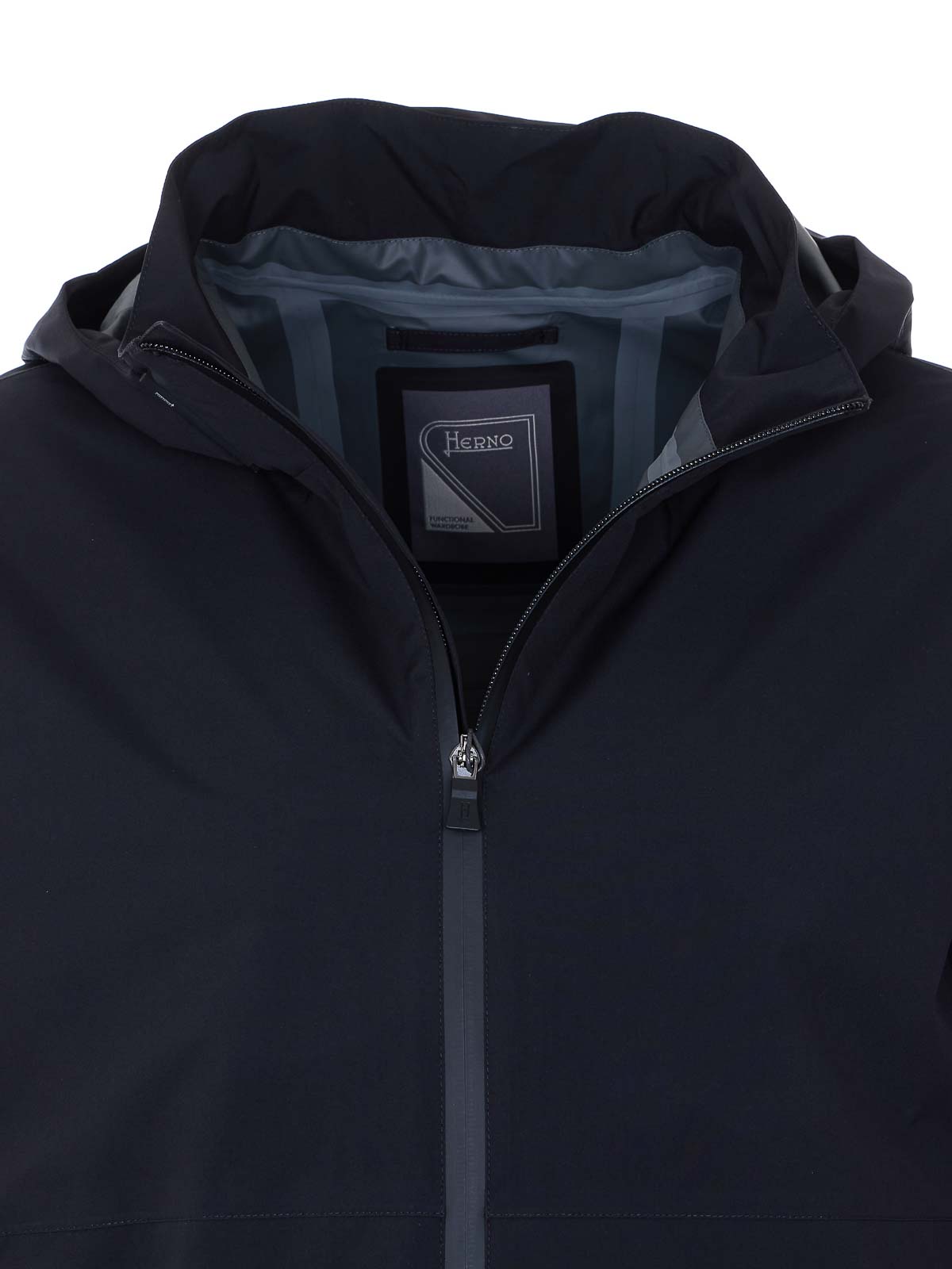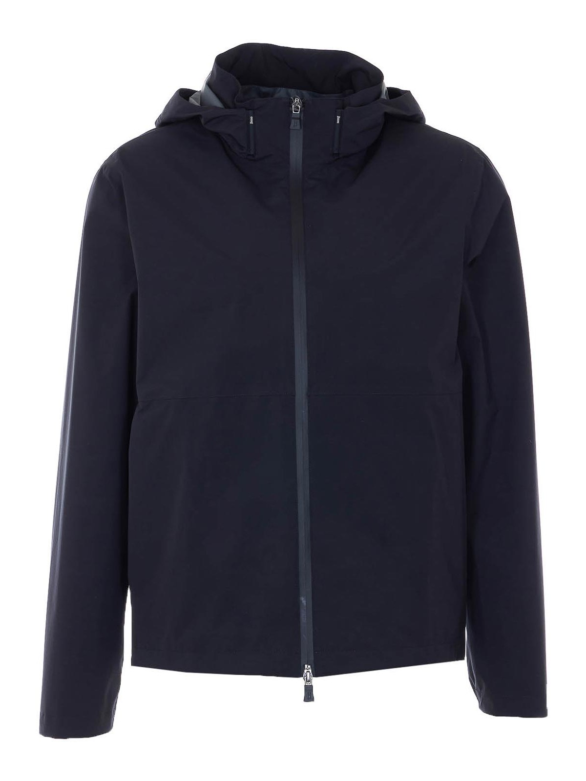 Herno black jacket, zip closure, hood detail, long sleeves, lateral zip pockets, removable hood detail