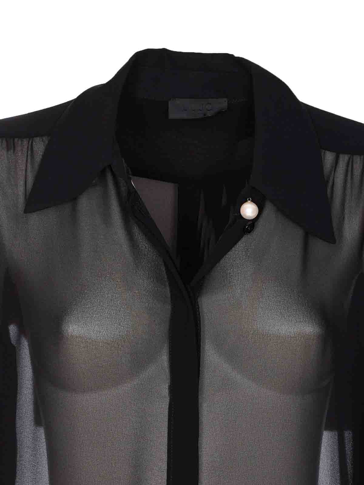 Liu jo black regular collar, long sleeves, buttons closure, jewel button on cuffs, transparent effect