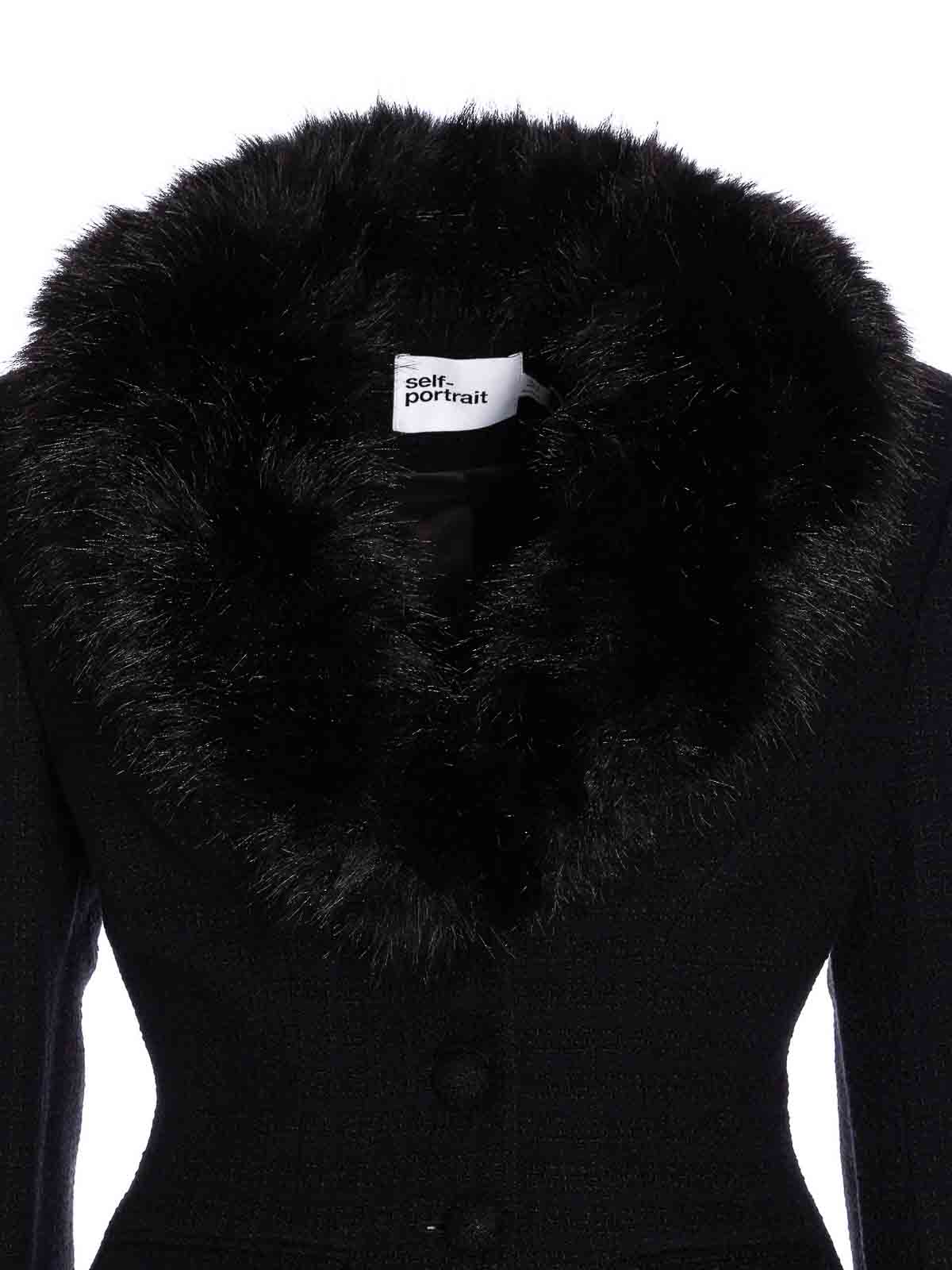 Self Portrait: Fur & Shearling Coats - Black Tailored Fur Jacket