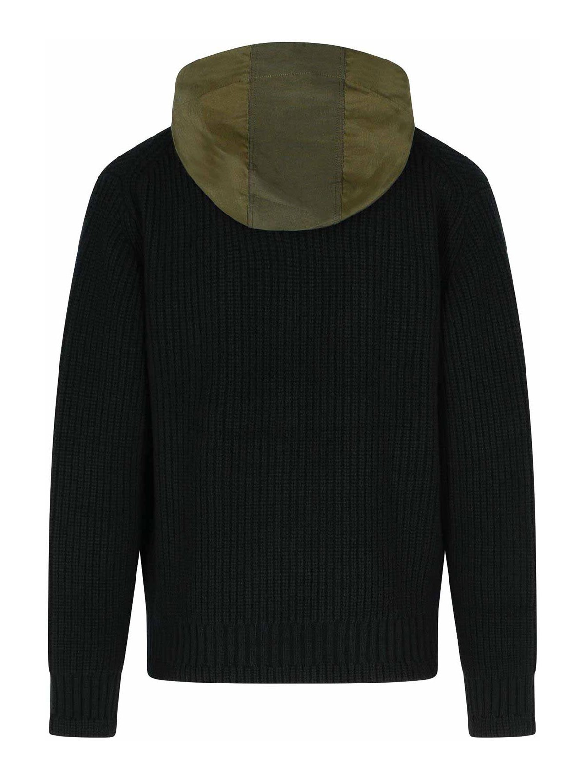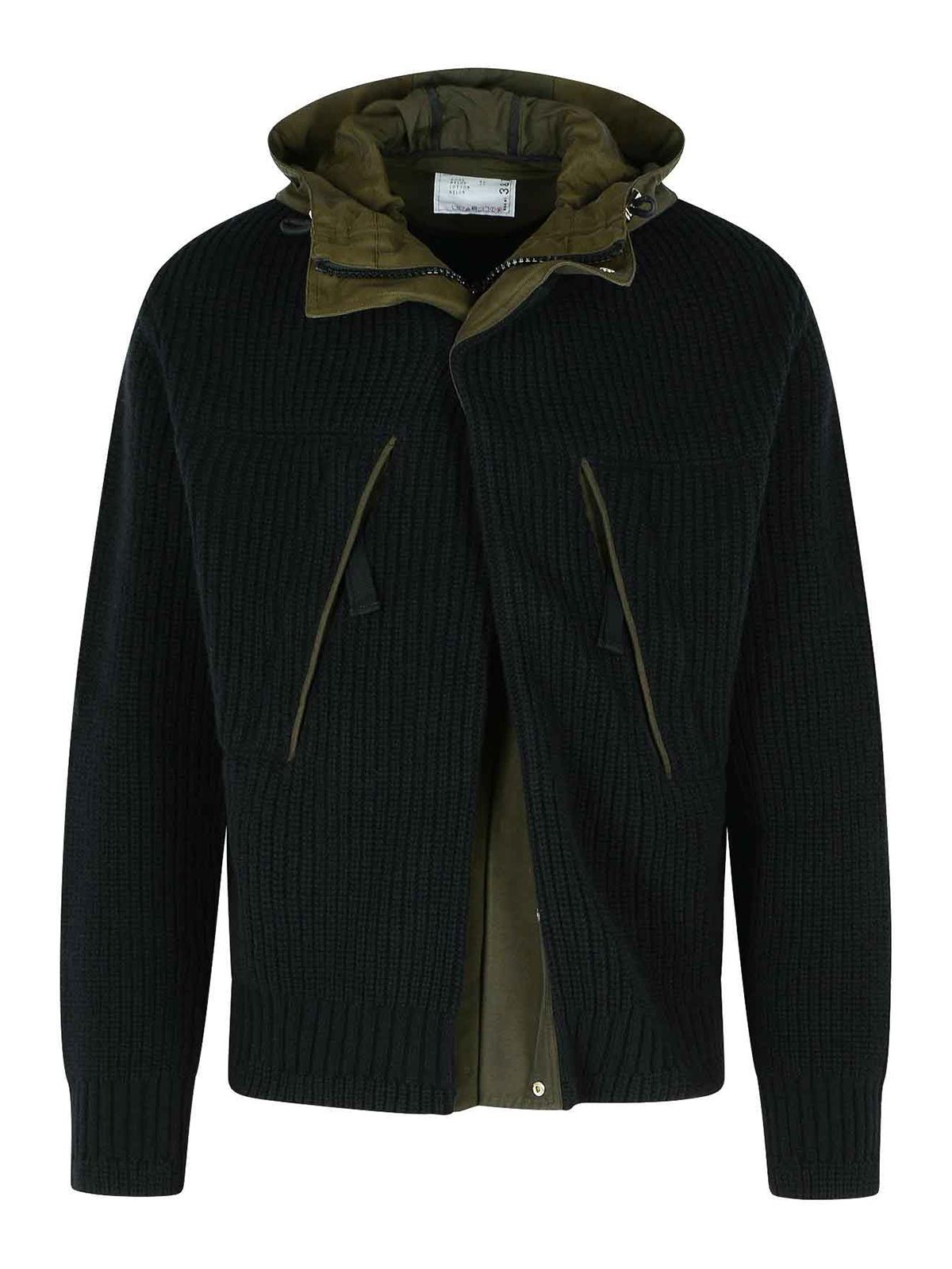 Adjustable hood with drawstring zip and flap with snap buttons zip chest pockets ribbed trims